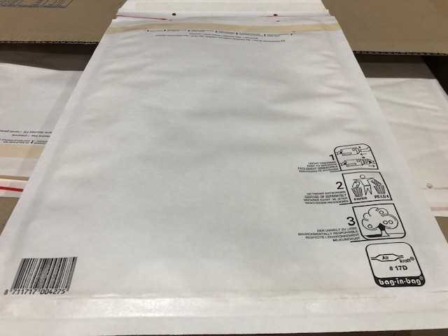 Circa 400 stuks in 4 dozen Merk: Airkraft Model: 17D Product type: Luchtkussenenvelop Kleur: Wit Lengte: 35 Breedte: 25
