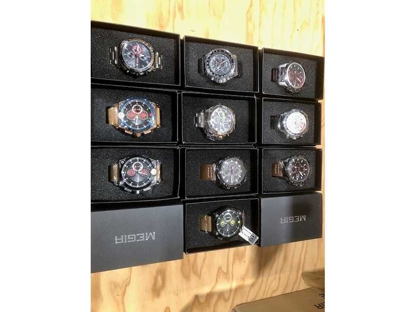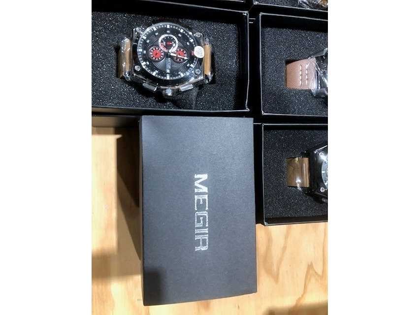 Megir polshorloges volledig nieuw en ongebruikt. 2 stuks met edelstalen band Merk: Megir Materiaal horlogeband: Leder en Staal Materiaal kast: Staal