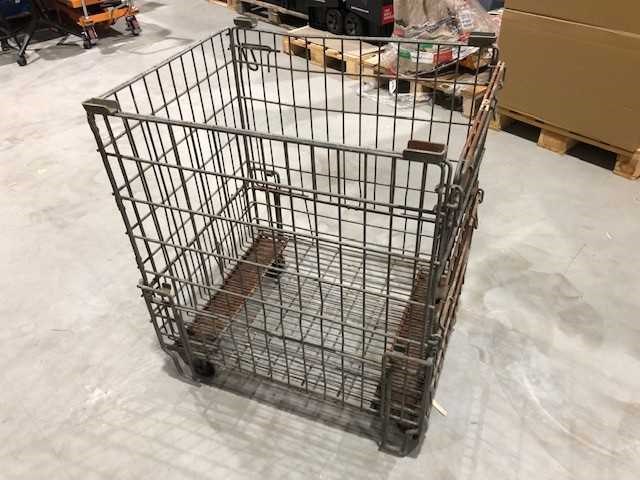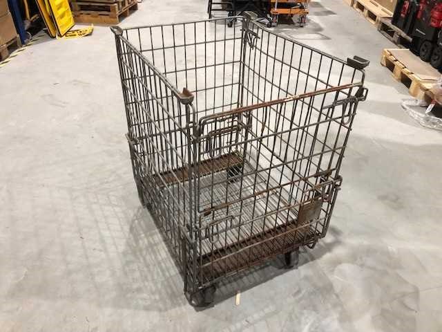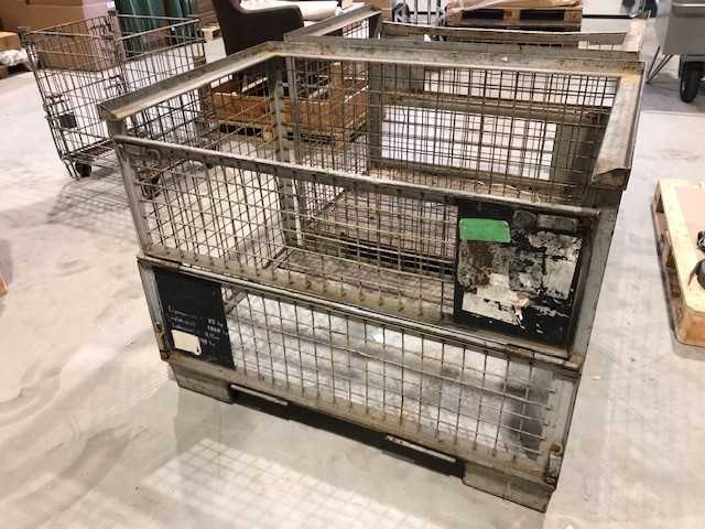 2 stuks gebruikte gitterbox 1 stuks gebruikte metalen korf op wielen