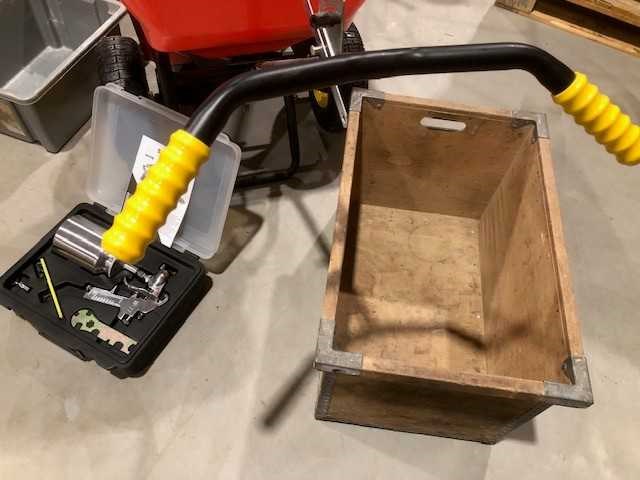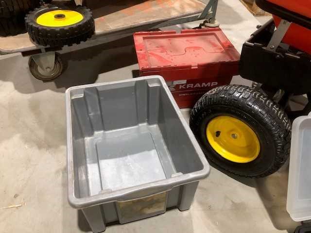 Partij gebruikte en ongebruikte karren, wielen, kisten en verfspuit (14x)