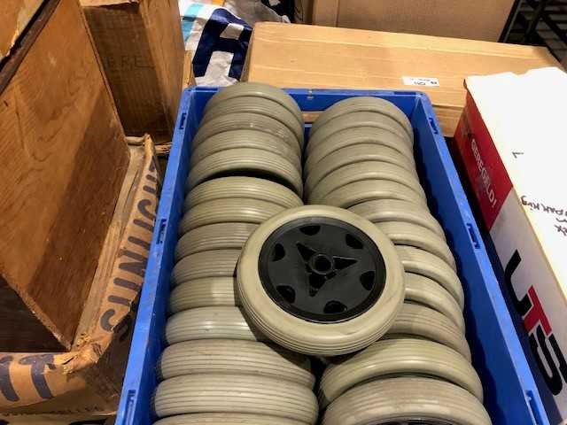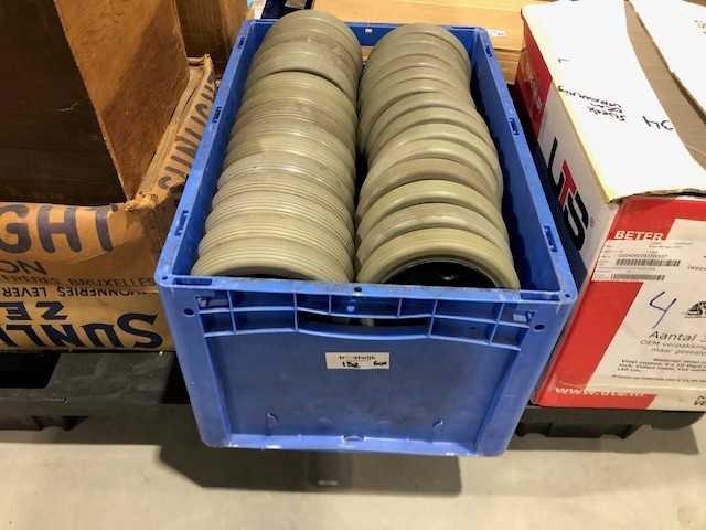 Kunststof wielen met rubberen lekvrije band. 175 mm x as 18 mm naaf circa 35 mm Zijn nieuwe en ongebruikte wielen.