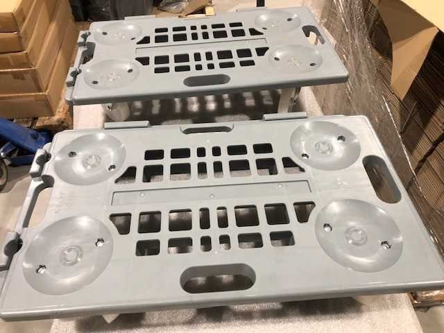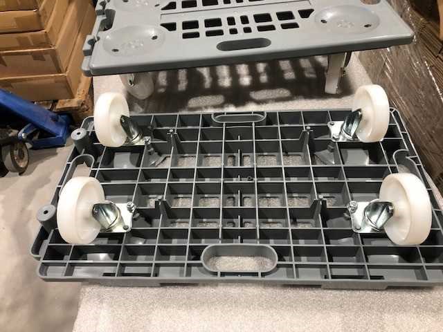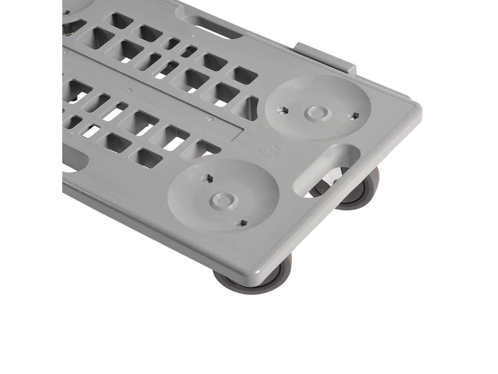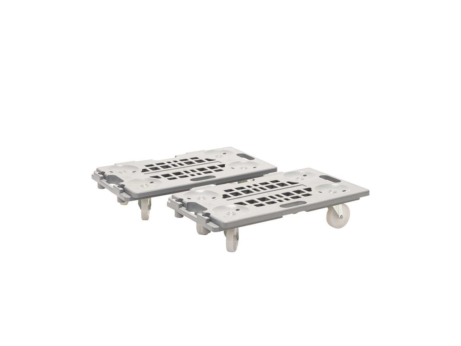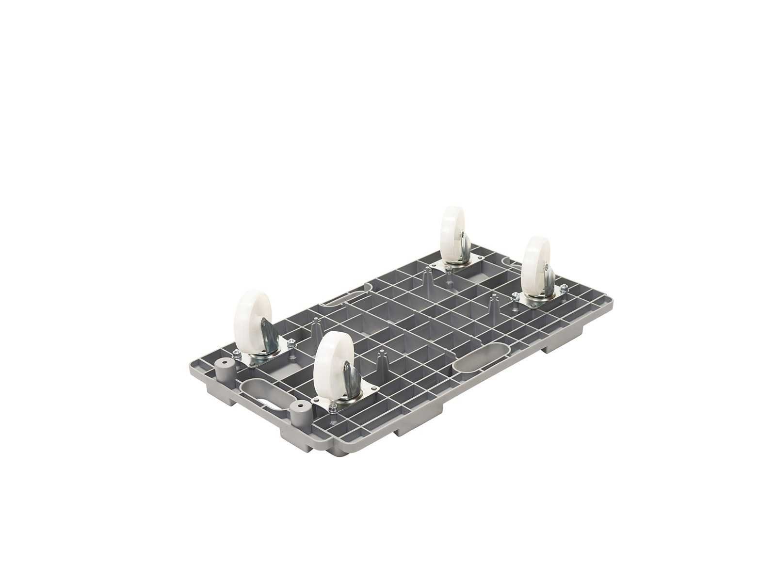 - Deze Dolly is zowel in de lengte als in de breedte koppelbaar. - Zeer licht slechts 4 kg. - Gemaakt van recycleerbaar polypropyleen. - Antislip platform met 2 rubberen glijders. - Stabiel stapelbaar. - 4 non-marking low-noise nylon zwenkwielen Ø100mm. - Lage startweerstand. Merk: Matador Kleur: Grijs Laadvermogen: 150