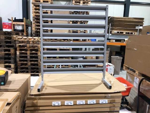 Matador opbergrek voor 48 bakken (levering zonder bakken) Made in Holland Gewicht: 9,2 kg. Capaciteit: 150 kg. Wordt ongemonteerd geleverd. Merk: Matador Type: Bak48 Metaal: true Afmeting l: 680mm Afmeting b: 300mm Afmeting h: 820mm