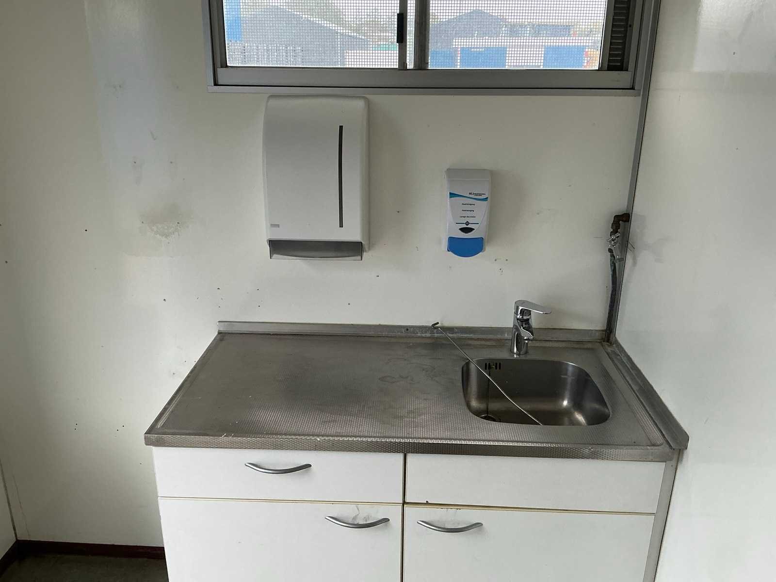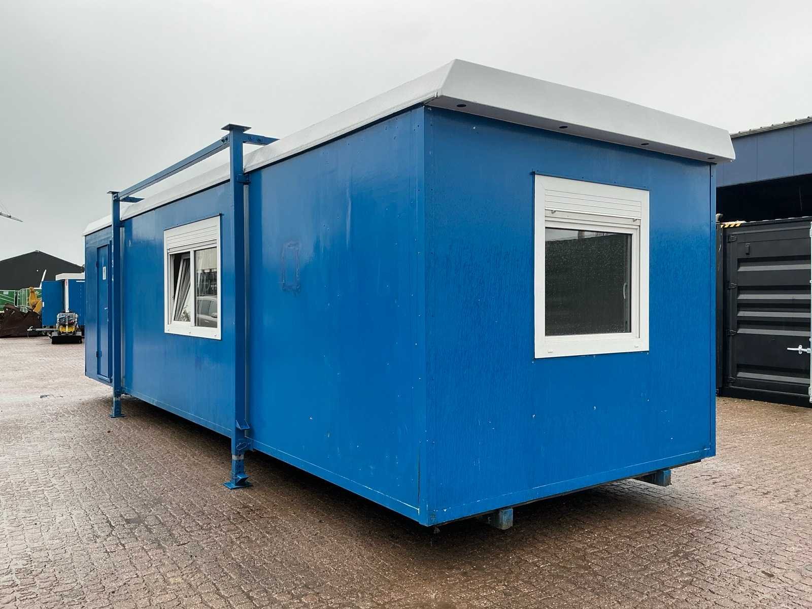 In hoogte verstelbaar. Voorzien van keukenblok met warmwater voorziening (elektrische boiler), toilet, elektrische verwarming, groepenkast, stopcintacten, draai-/kiepramen met rolluiken, kapstok Merk: Brouwer Directie-unit: true Afmeting l: 10000mm Aantal ramen: 4 Keukenblok: true Toilet: true Totale afmeting L: 10000mm