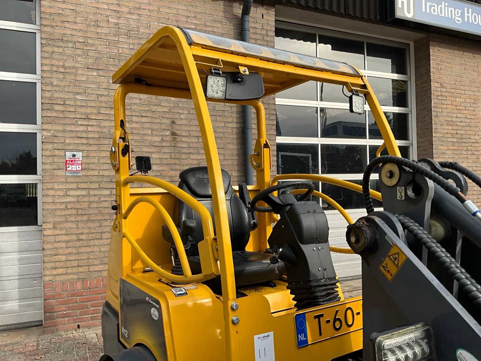 Voorzien van hydraulische snelwissel, extra functies, Let op! Dit voertuig heeft een kentekenregistratie. Bij het afhalen moet het kenteken worden gevrijwaard of geëxporteerd. Vrijwaren kan bij de reguliere RDW-locaties. Exporteren kan alleen bij de daarvoor aangewezen RDW-keuringsstations. Aan deze handelingen kunnen kosten verbonden zijn. Merk: Eurotrac Type: W12S Bouwjaar: 2020 Serienummer: 12A2205964 Merk motor: Kubota Kenteken: T-60-FFS Motorvermogen (kW): 18.5kW Aantal cilinders: 4 Brandstof: diesel Bedrijfsgewicht: 2050kg Bandenmaat: 31x15.50-15 Afgelezen urenstand: 139 Totale afmeting L: 3500mm Totale afmeting Breedte: 1450mm