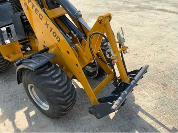 Serienummer: 20200923; merk motor: Perkins; motorvermogen: 18,50 kW; aantal cilinders: 3; brandstofsoort: diesel; bandenmaat: 26x12.00-12; afgelezen urenstand: 11; totale afmeting L: 2900 mm; totale afmeting B: 1100 mm; totale afmeting H: 2100 mm; omschrijving: kniklader; geen kentekenregistratie; Merk: Hytec Type: X100 Bouwjaar: 2020