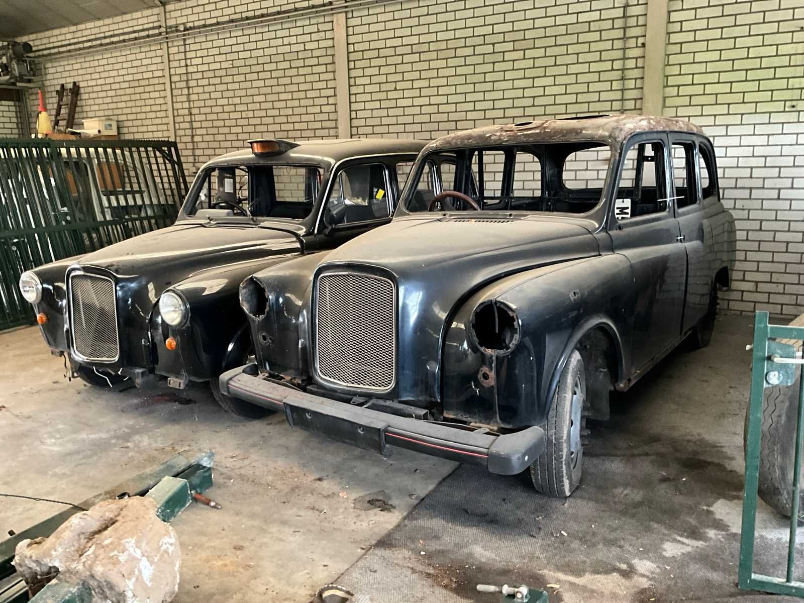 Betreft donor/restauratie voertuigen, 2x zonder kentekens, engelse taxi Merk: Carbodies Type: Taxi/Hire Car