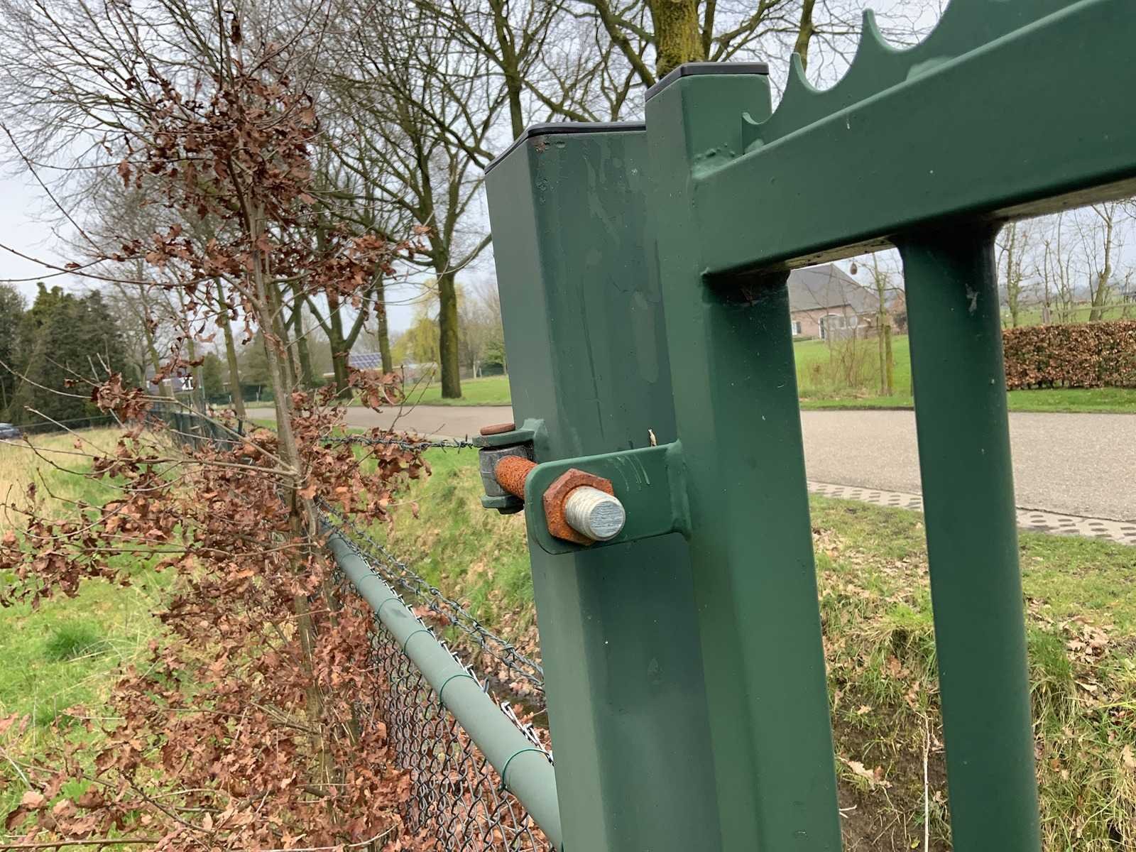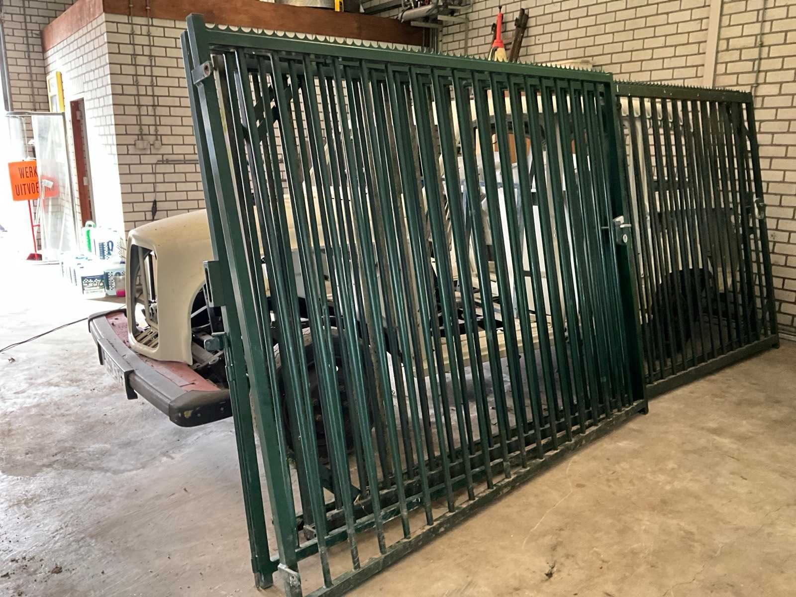 Bestaande uit: 2x staander en 2x poort (afmeting per poort 2600x1900mm); inclusief sleutel; poort is gedemonteerd Lengte: 520cm Hoogte: 190cm Materiaal: Staal