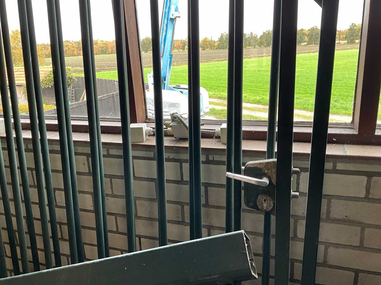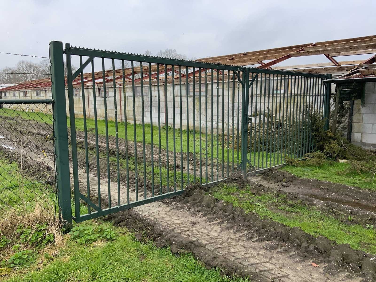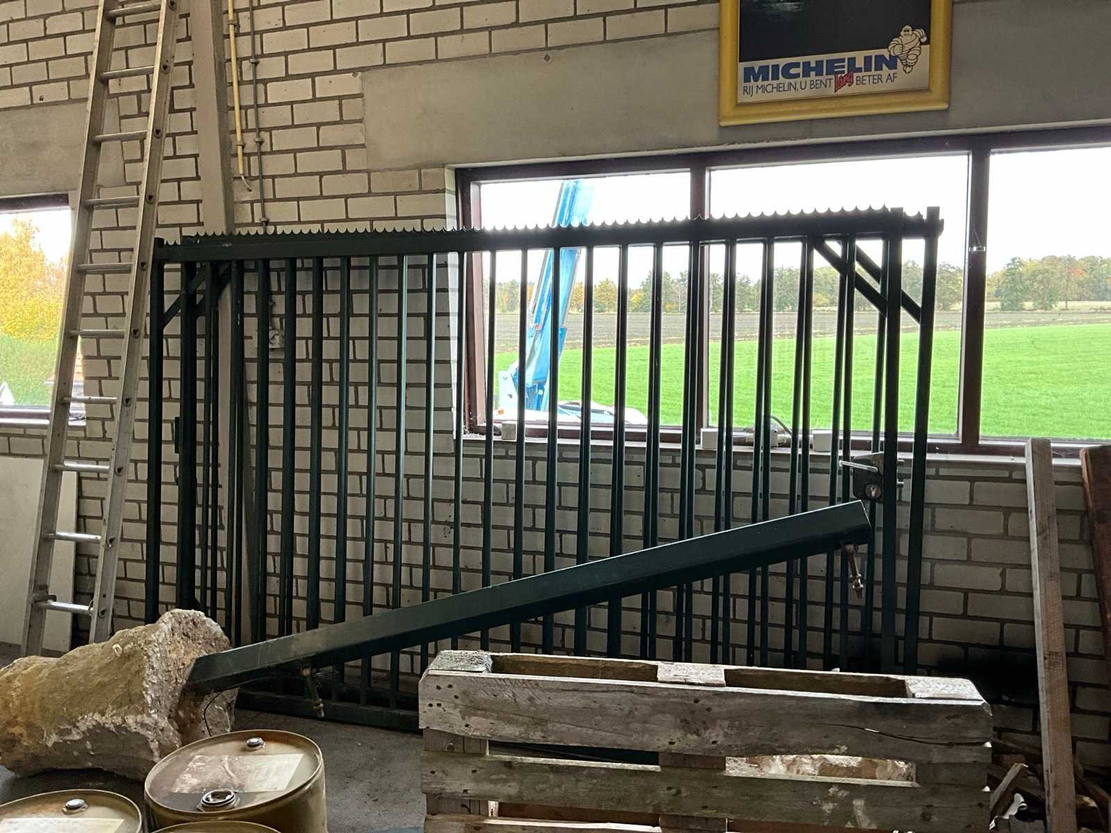 Bestaande uit: 2x staander en 2x poort (afmeting per poort 3100x1900mm); inclusief sleutel; Kavel is gedemonteerd Lengte: 610cm Hoogte: 190cm Materiaal: Staal