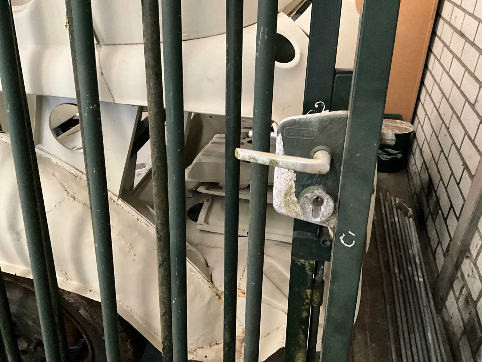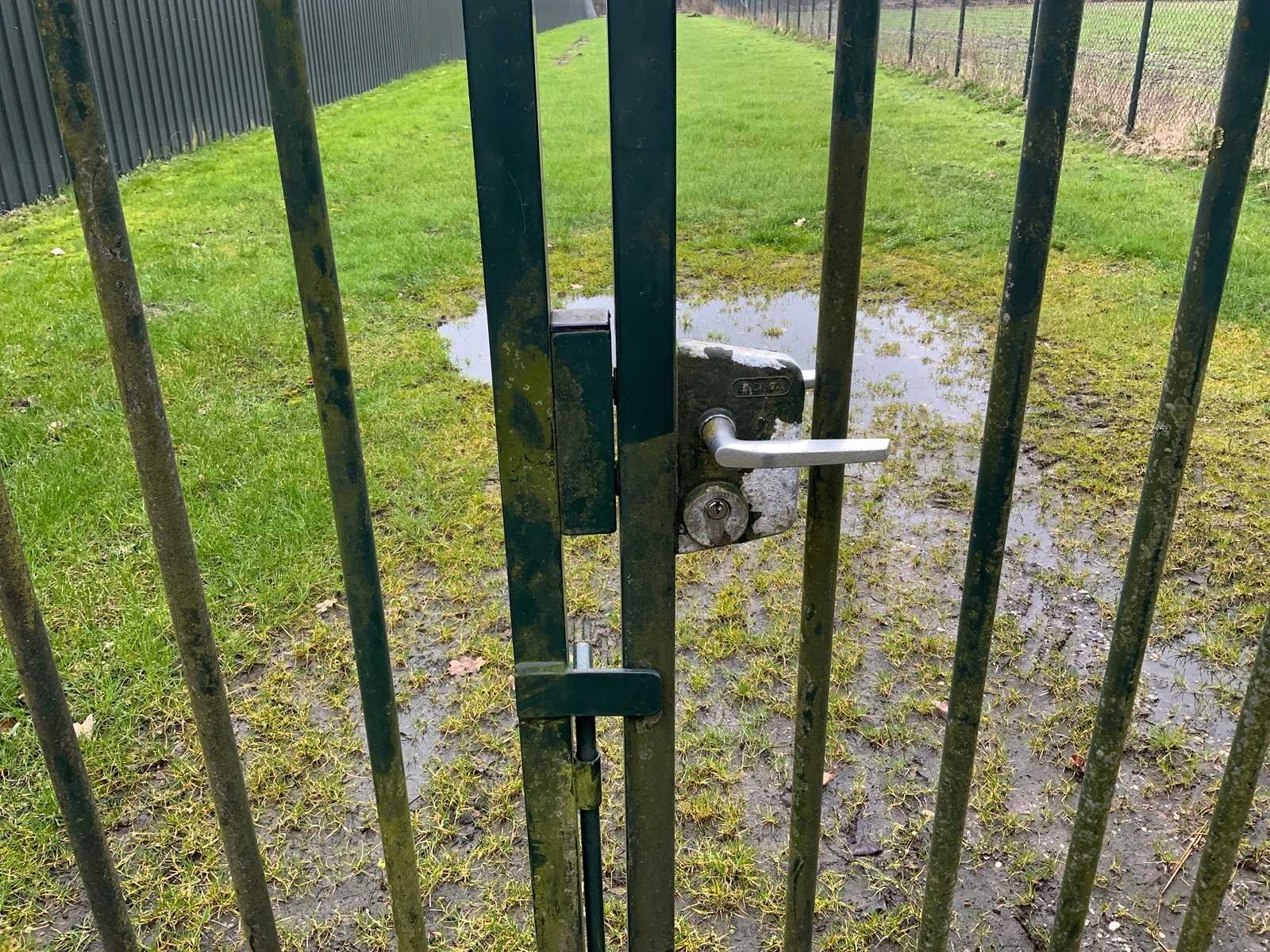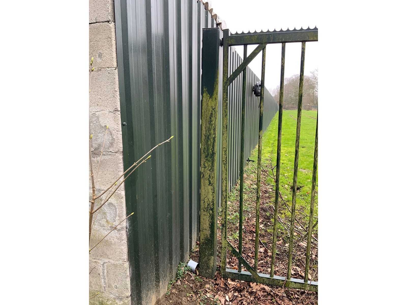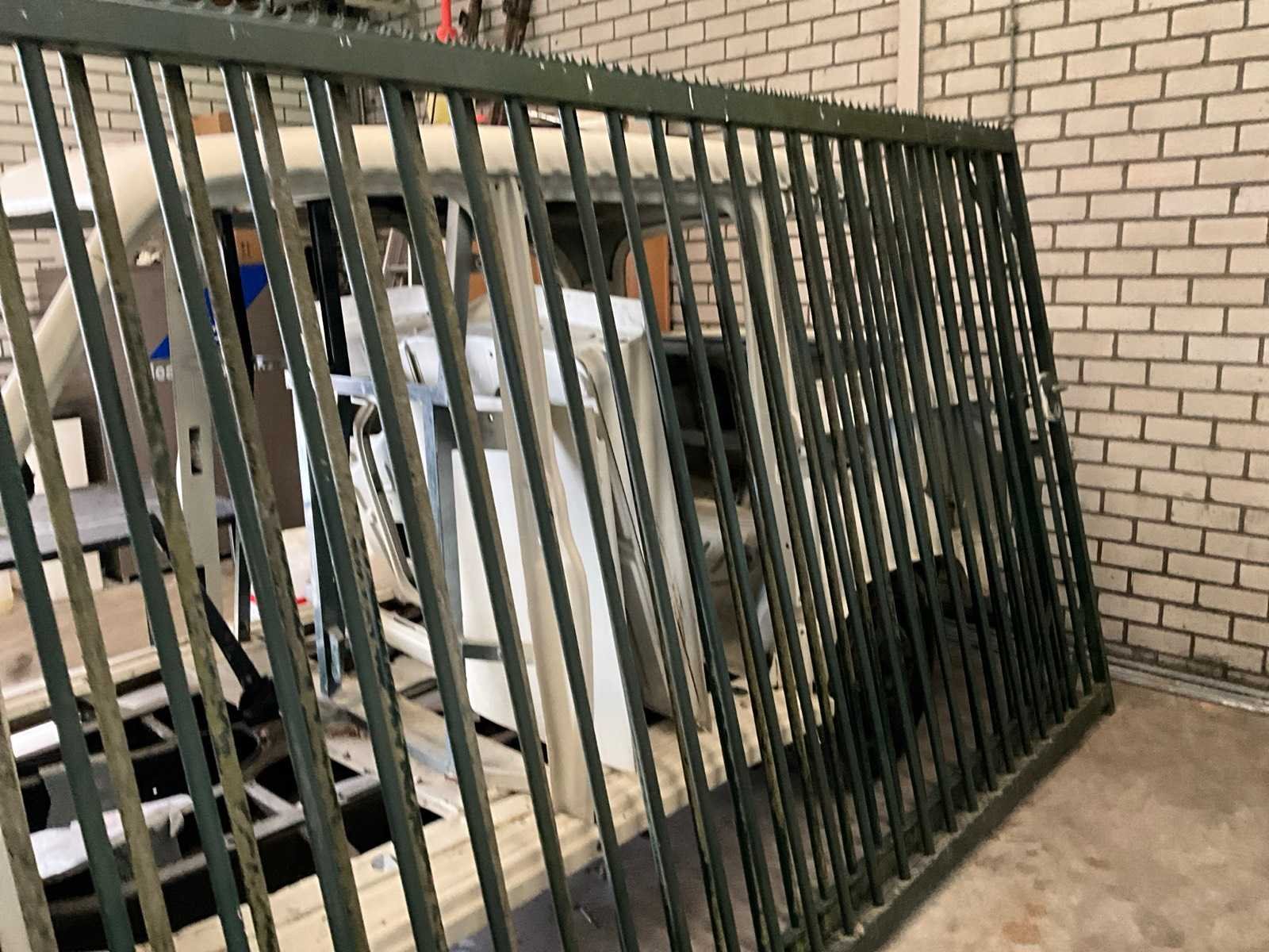 Bestaande uit: 2x staander en 2x poort (afmeting per poort 4200x1900mm); inclusief sleutel; Kavel is gedemonteerd Lengte: 840cm Hoogte: 190cm Materiaal: Staal
