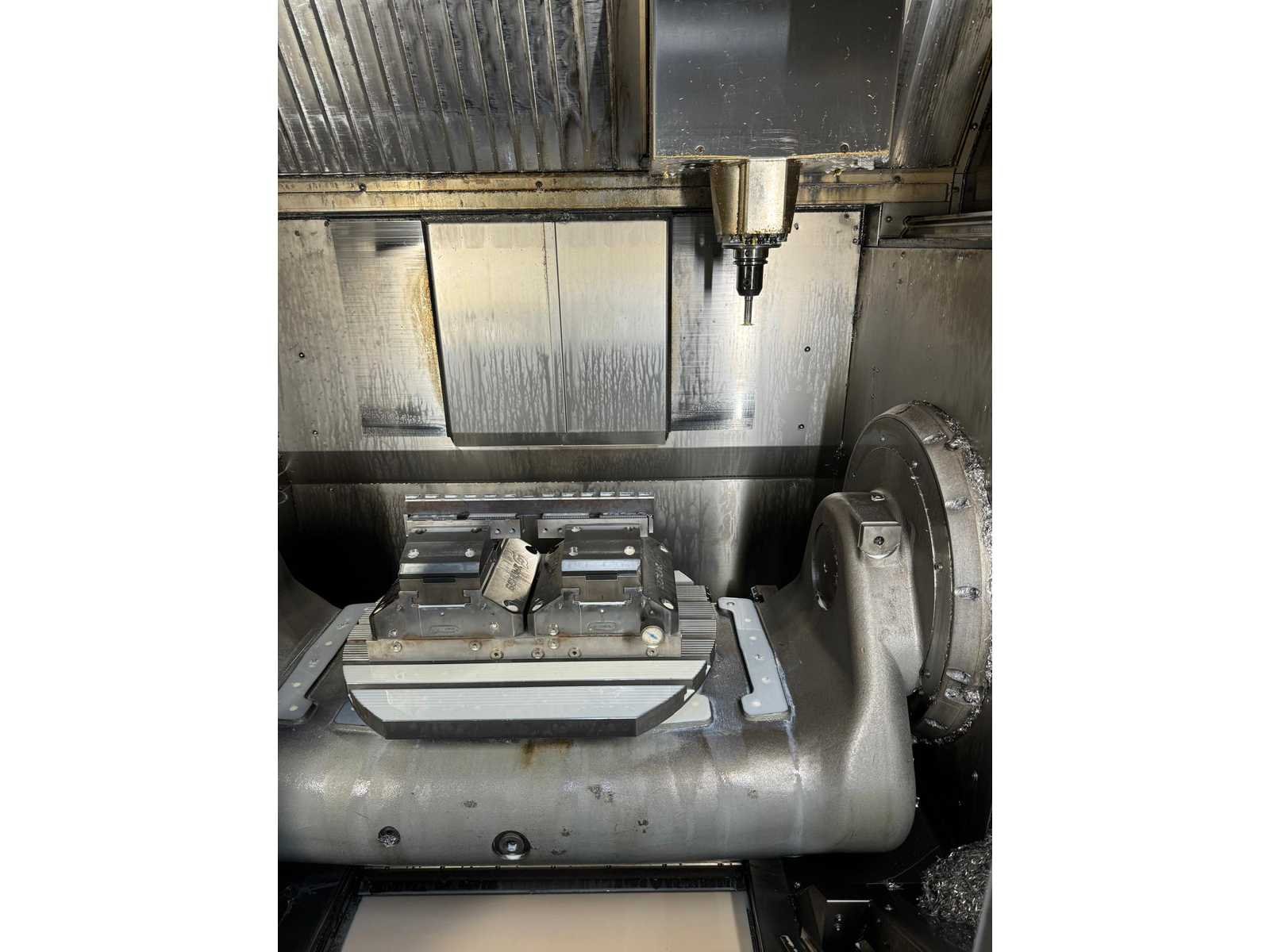 A-as: C-as: +91° ~ -139° Machine is uitgerust met: - volledig geautomatiseerde cel met Fanuc robot - nevelfilter van Mann + Hummel - hoge druk door spindelkoelsysteem (40 Bar) - totaal 81 posities op ATC -Handleidingen - papieren riemfilter Spaanbak niet inbegrepen Merk: Hermle Type: C400 U Bouwjaar: 2015 Serienummer: 23902 Opname iso: HSK-63 Verplaatsing x-as: 850mm Verplaatsing y-as: 700mm Verplaatsing z-as: 500mm Snelheid van n =: 20rpm Snelheid tot n =: 18000rpm CNC-besturing, merk, type: Heidenhain iTNC 530 Spanentransporteur: true Koelmiddelpomp: true Werkstuk gewicht max.: 600kg T-gleuf opspantafelafmeting B: 540mm T-gleuf opspantafelafmeting L: 650mm -assig: 5 Motorvermogen (kW): 20kW Handboek aanwezig: true Aansluiting: 400V Machinegewicht: 10500kg