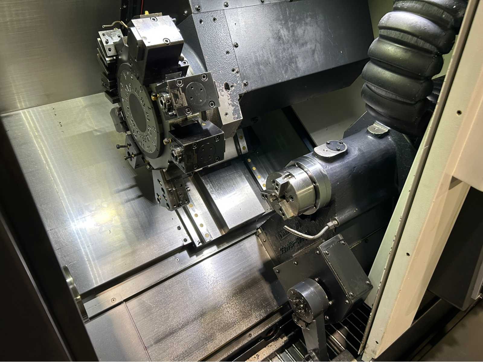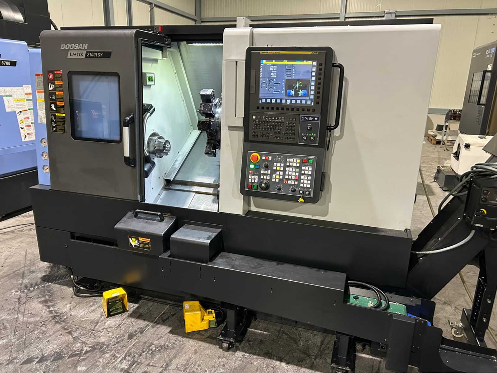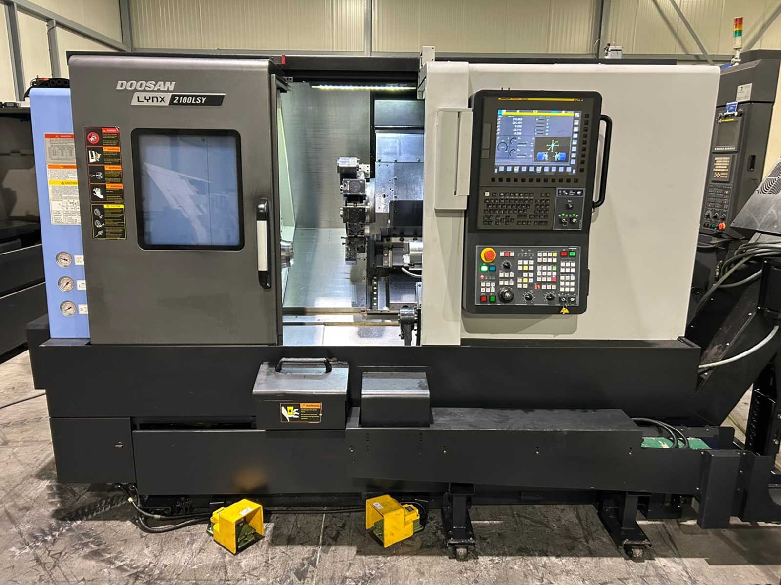 X-as: 205 mm Z-as: 560 mm Y-as: -52,5 mm ~ +52,5 mm C-as: 0,001° Live tooling: ja Live gereedschapssnelheid: 6000 tpm Live gereedschapsvermogen: 3,7kW Subspindel: ja Grootte subspindel: 5" Snelheid subspindel: 6000 tpm Vermogen subspindel: 5,5kW Machine is uitgerust met: - EZ Gids - Eenvoudig te bedienen pakket - onderdeel catcher - gereedschap voorzetter - staaf aanvoer - Doosan bewaking van de gereedschapsbelasting - 128 paar gereedschapscoördinaten - Spiraalvormige interpolatie Merk: Doosan Type: Lynx 2100LSY Bouwjaar: 2021 Serienummer: ML0406-000730 Draai: 170mm Draailengte: 600mm Holle spil Ø: 51mm Snelheid van n =: 1rpm Snelheid tot n =: 6000rpm Aantal gereedschapwisselstations: 12 Koelmiddelpomp: true Spanentransporteur: true CNC-besturing, merk, type: Fanuc i Series Afgelezen urenstand: 5689 Motorvermogen (kW): 15kW Aansluiting: 400V Handboek aanwezig: true Machinegewicht: 4150kg Afmeting l: 2880mm Afmeting b: 1711mm Afmeting h: 1921mm