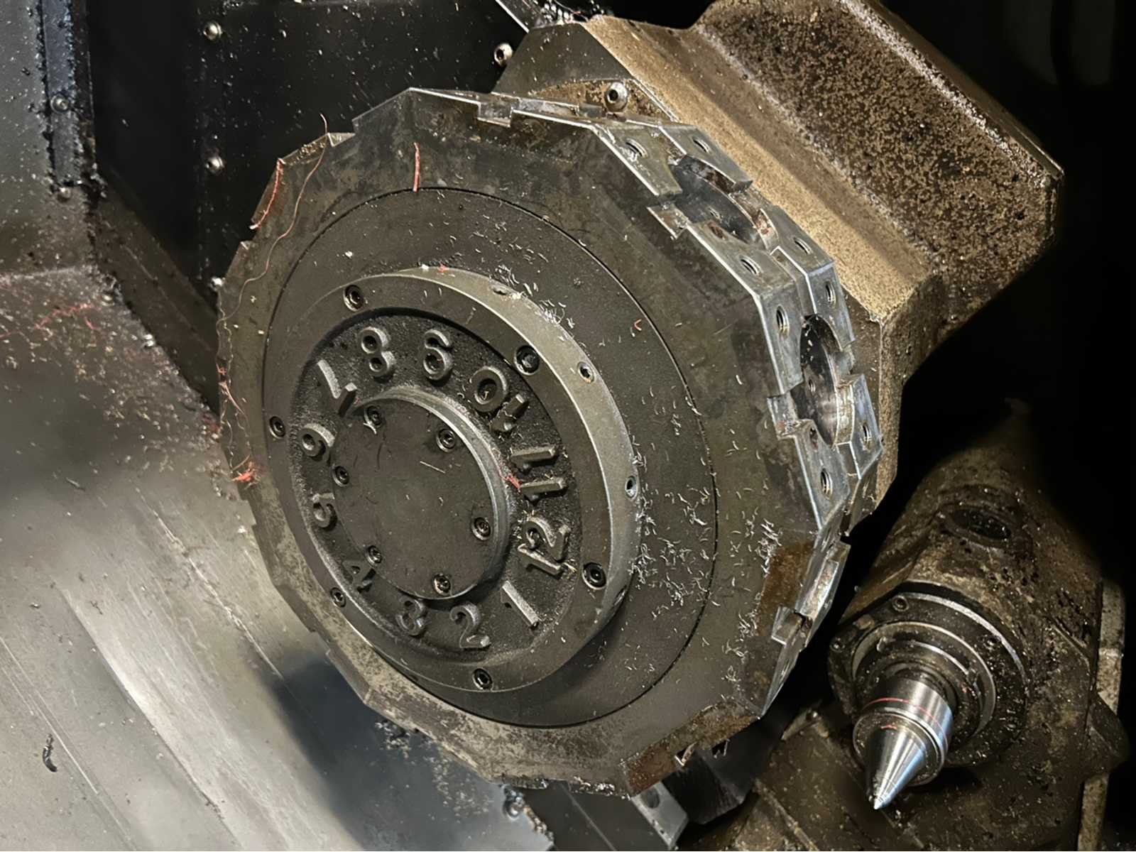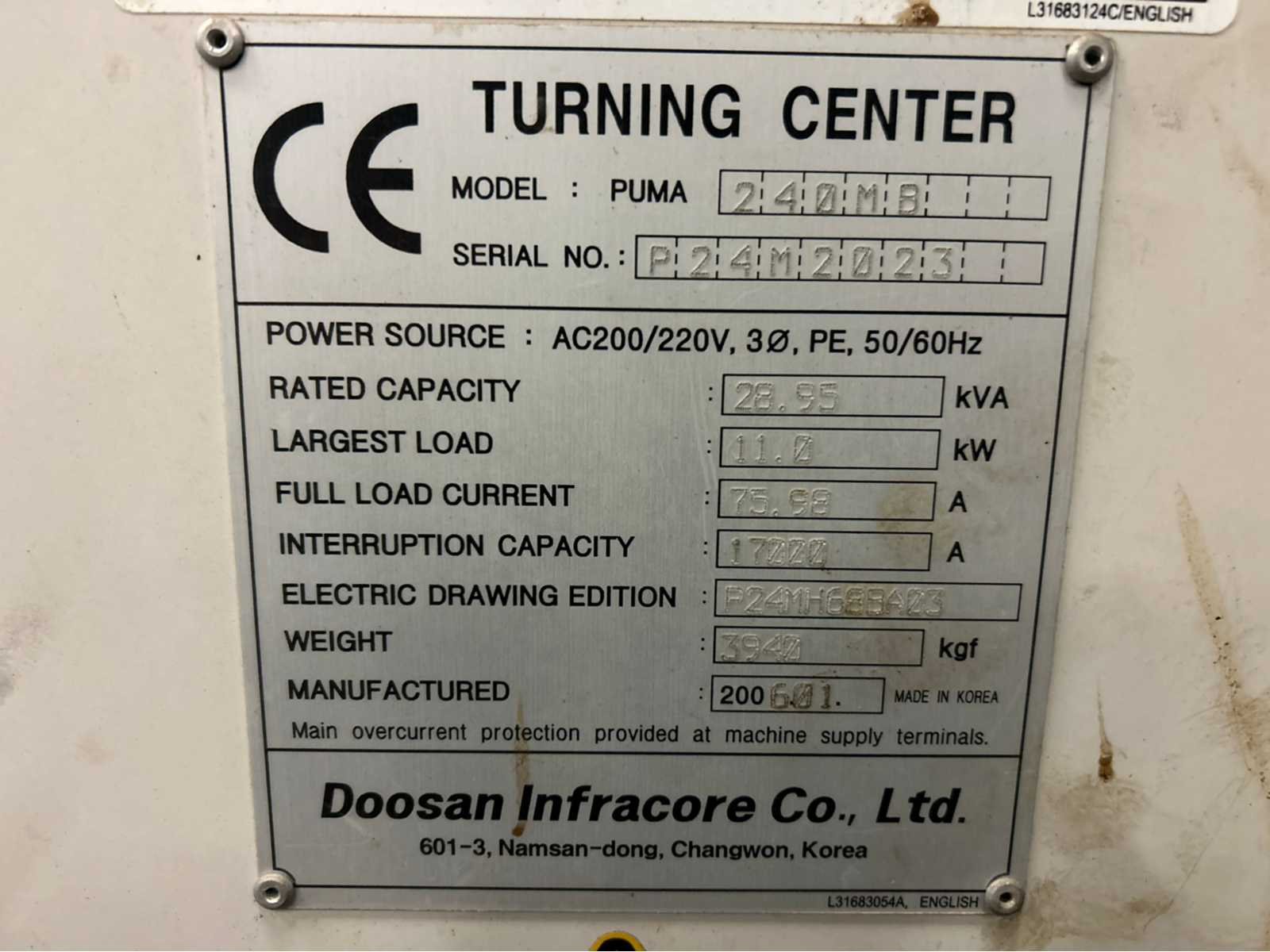 X-as: 205 mm Z-as: 580 mm C-as: 0,001° Live tooling: ja Live gereedschapssnelheid: 5000 tpm Live gereedschapsvermogen: 3,7kW Machine is uitgerust met: - spanen transporteur - staaf aanvoer - gereedschap voorzetter - Live tooling Merk: Doosan Type: Puma 240M Bouwjaar: 2006 Serienummer: P24M2023 Draai: 300mm Draailengte: 513mm Holle spil Ø: 65mm Snelheid van n =: 1rpm Snelheid tot n =: 3500rpm Aantal gereedschapwisselstations: 12 Koelmiddelpomp: true Spanentransporteur: true CNC-besturing, merk, type: Fanuc Series 21i-TB Motorvermogen (kW): 18.5kW Aansluiting: 400V Machinegewicht: 4000kg Afmeting l: 3000mm Afmeting b: 1600mm Afmeting h: 1740mm