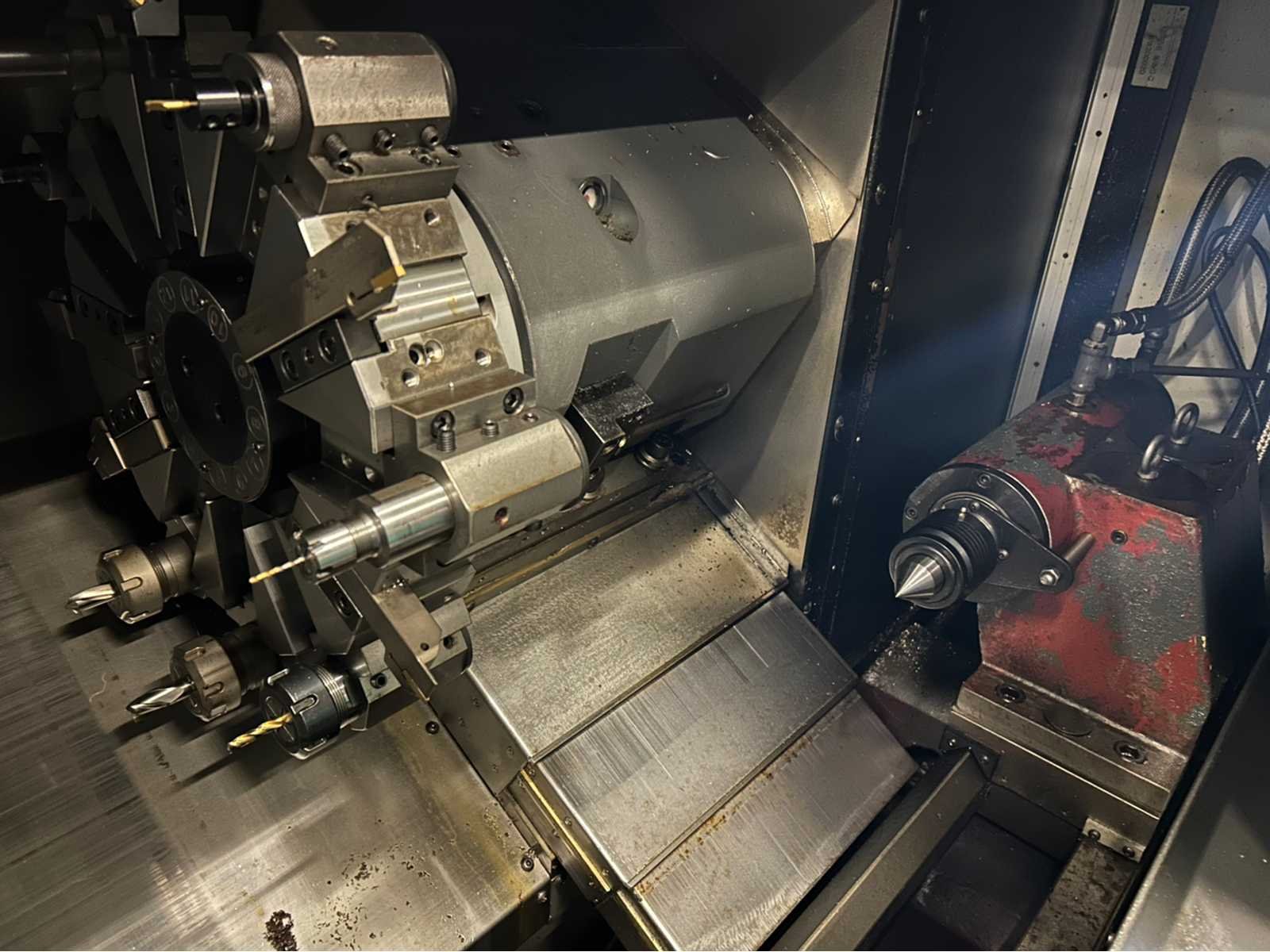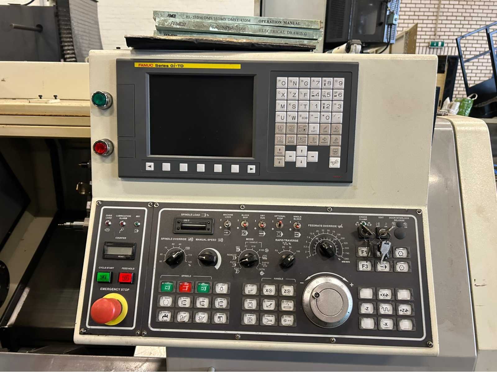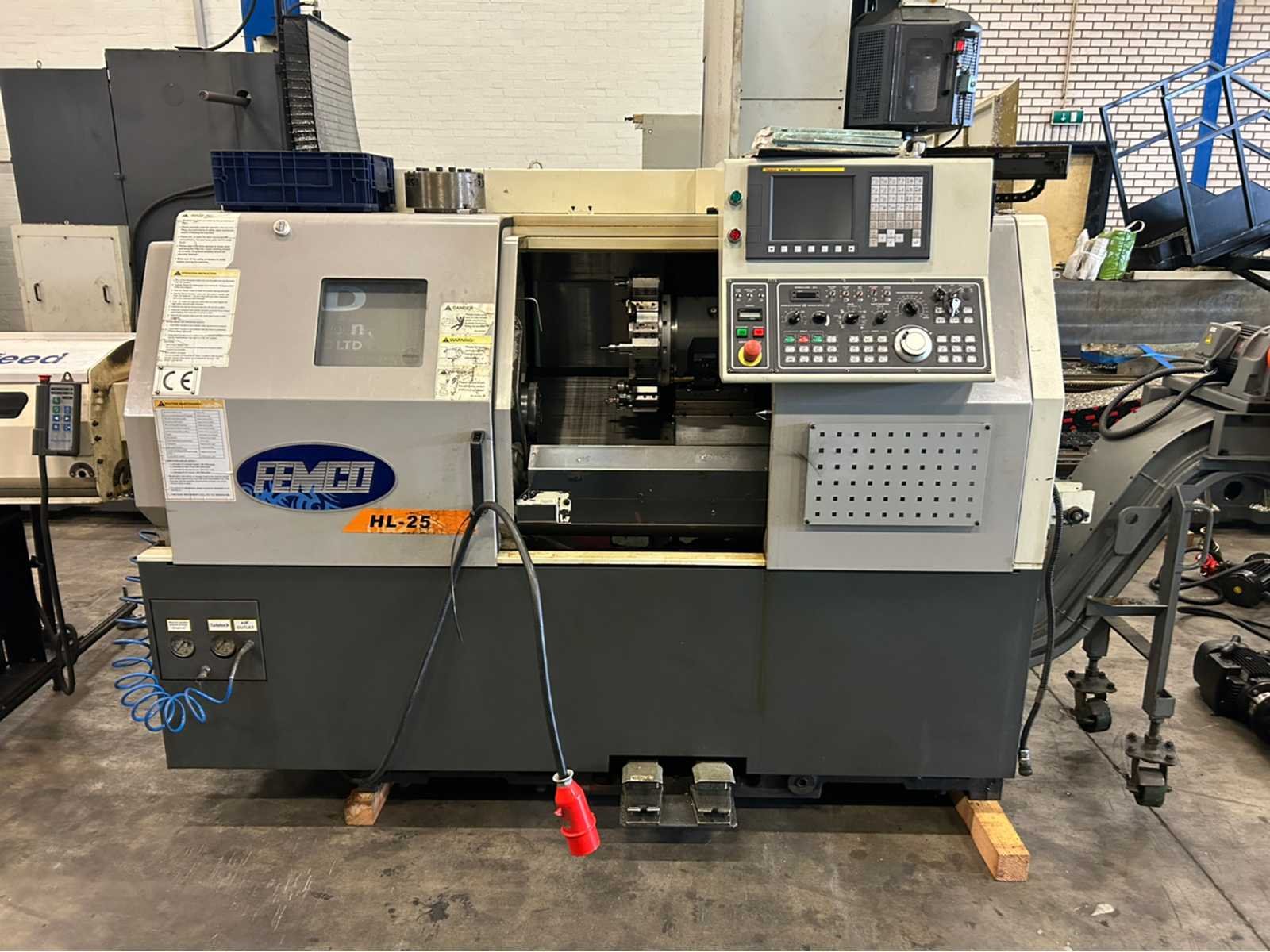 X-as: 150 mm Z-as: 630 mm Machine is uitgerust met: - spanen transporteur - gereedschap voorzetter - onderdeel catcher - onderdeel transportband - spantang klauwplaat - extra normale boorkop - krat met tooling - staafaanvoer Hydrafeed MV65 Merk: Femco Type: HL-25N Bouwjaar: 2013 Serienummer: L113-2031 Draai: 250mm Draailengte: 580mm Holle spil Ø: 52mm Snelheid van n =: 1rpm Snelheid tot n =: 4800rpm Aantal gereedschapwisselstations: 12 Koelmiddelpomp: true Spanentransporteur: true CNC-besturing, merk, type: Fanuc Series 0i-TD Motorvermogen (kW): 14.7kW Aansluiting: 400V Handboek aanwezig: true Machinegewicht: 3250kg Afmeting l: 2150mm Afmeting b: 1500mm Afmeting h: 1750mm