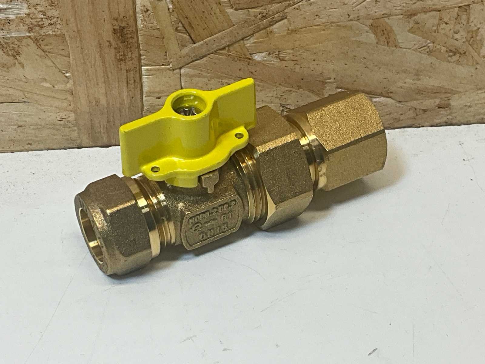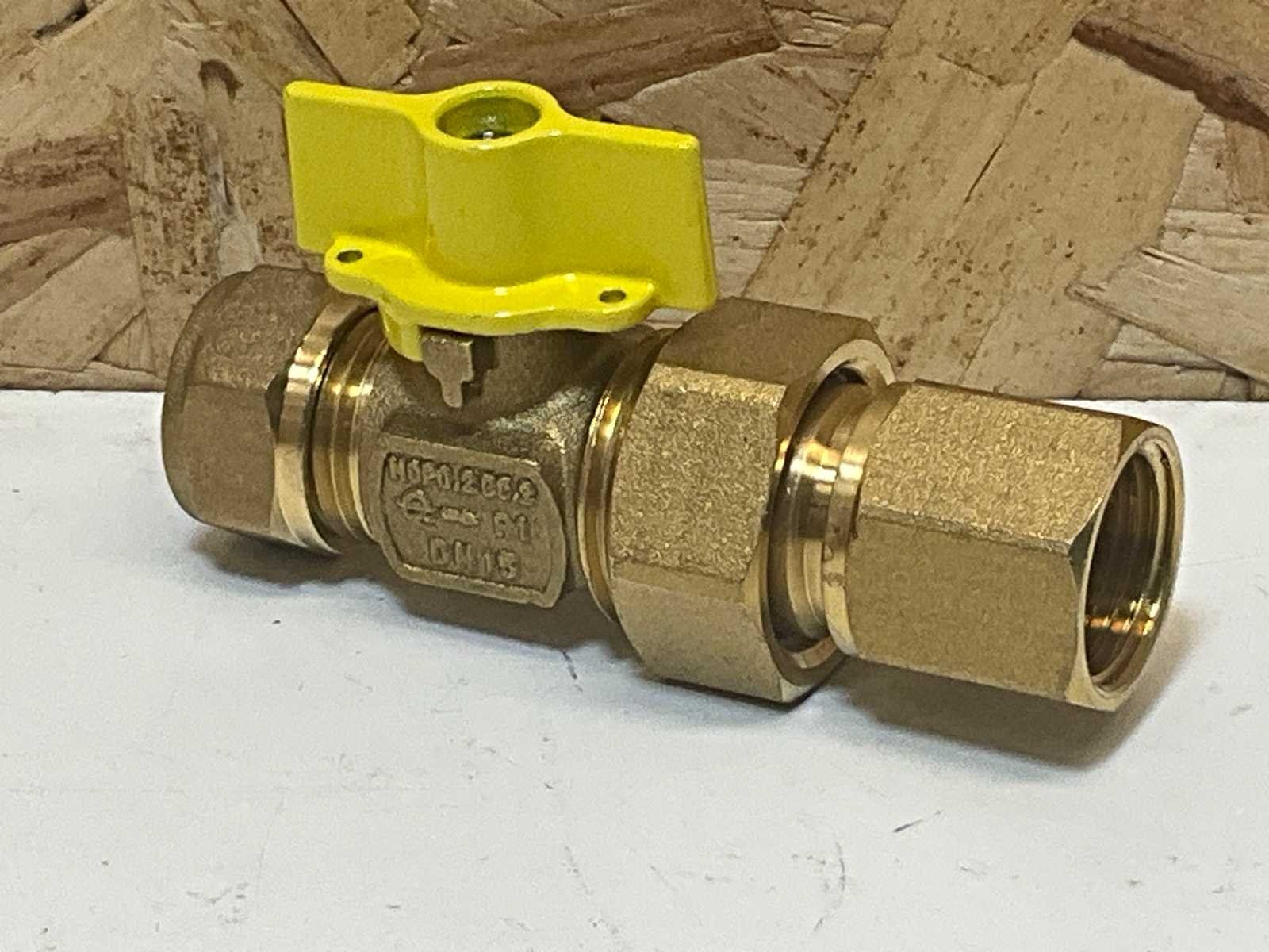 Gaskogelkraan recht 15mm knel x 1/2"bn. koppeling Gastec Merk: BPE
