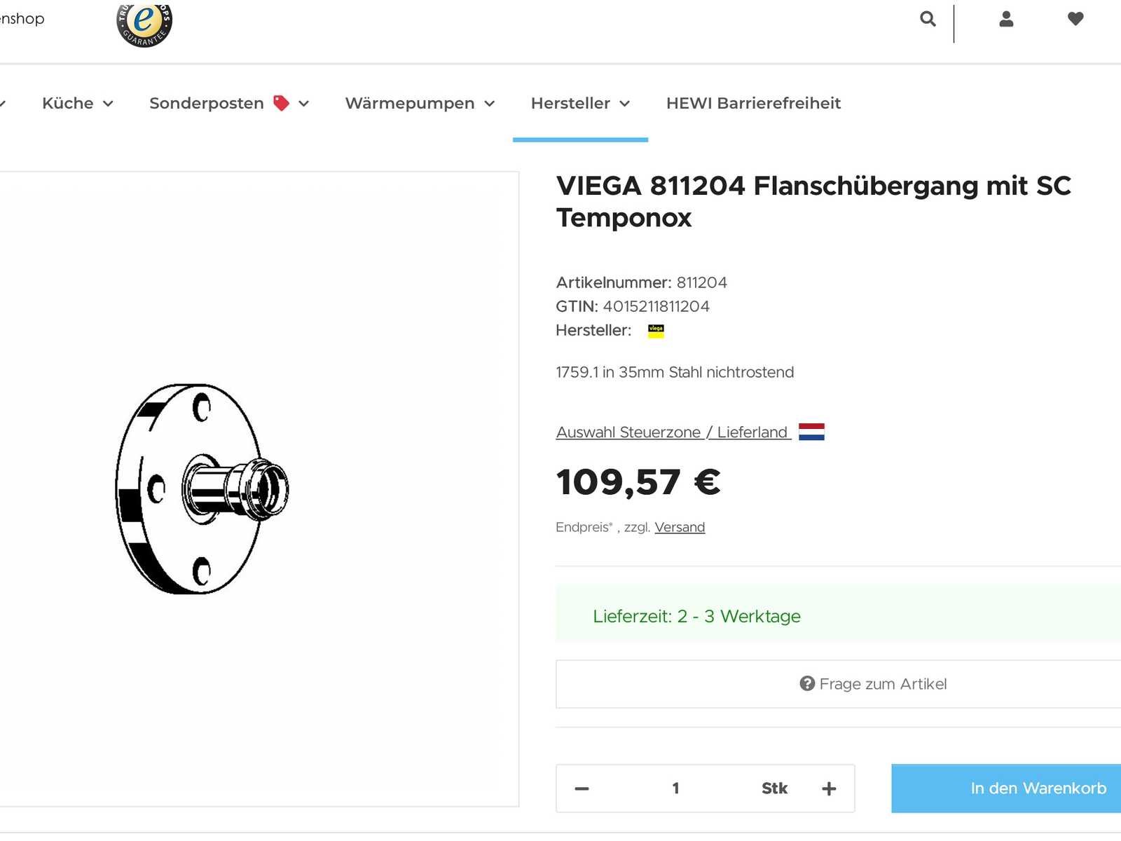 Flensovergang TEMPONOX persaansluiting RVS 35mm 1759.1 Merk: Viega Type: 811204