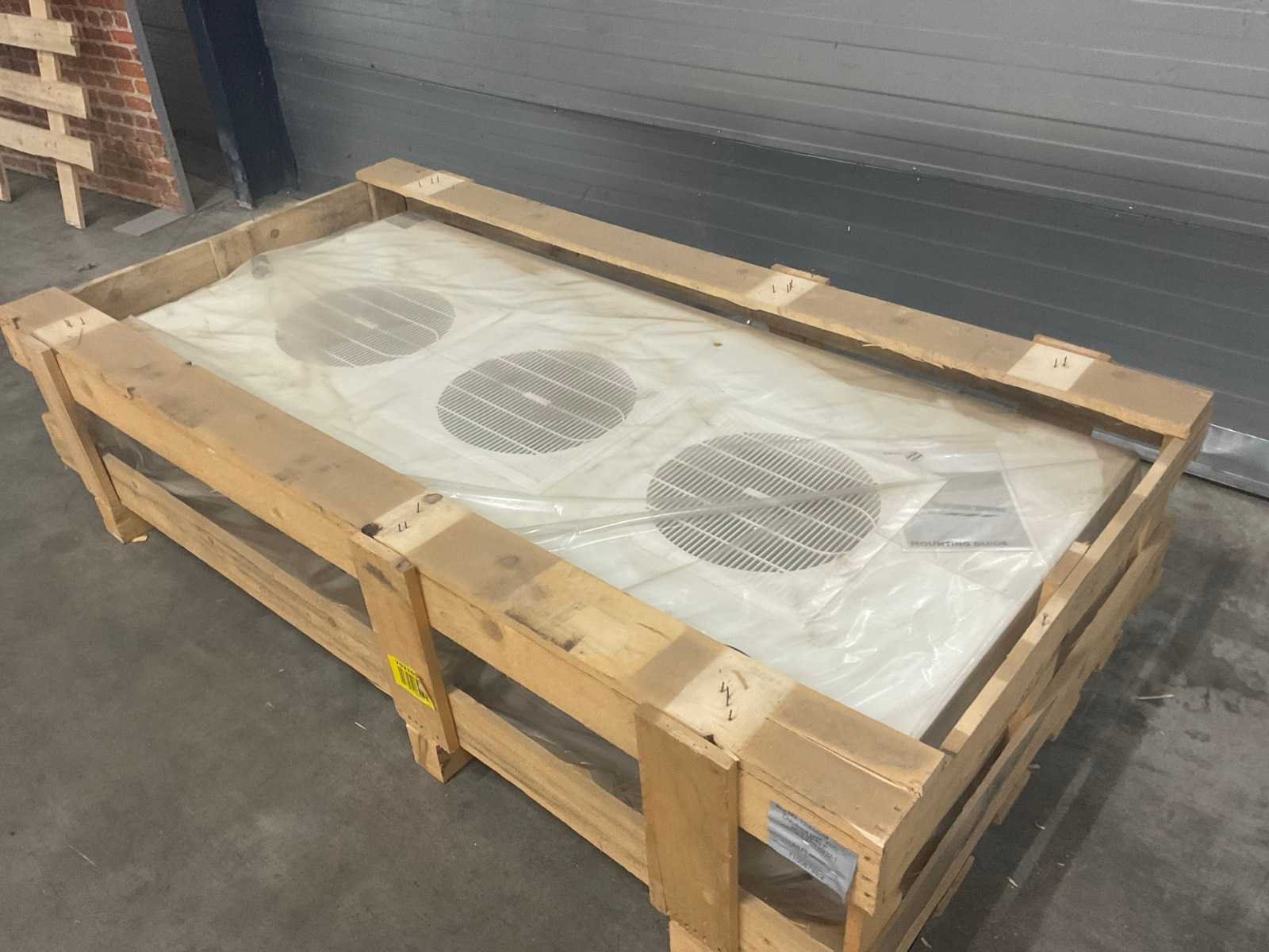 Verdamper bevindt zich in transport krat. Afmetingen van de krat (LxBxH) 117x220x54 cm Merk: Kelvion Aansluiting: 230V Eigen gewicht: 233kg Type koudemiddel: R744 Totale afmeting Breedte: 2020mm Totale afmeting Hoogte: 260mm Totale afmeting L: 1000mm Type: KDC-353-4BN-HX32