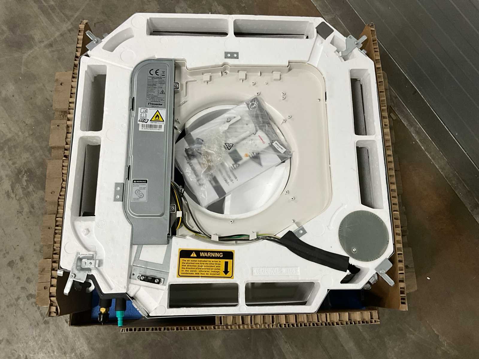 Tech Specs V5MCI32-60WiFiR/U5MRT32-60 Cooling Capacity: 53.000 Btu / h Heating Capacity: 62.000 Btu / h Energy Class (warmer zone): A+++ Cooling Capacity Range: 18.000-57.000 Btu/h Cooling Capacity Range: 15.53 (5.28-16.71) kWatt Heating Capacity Range: 15.000-66.000 Btu/h Heating Capcity Range: 18.17 (4.4-19.34) kWatt Seasonal Capacity (According to ΕΝ14.825) Cooling Pdesign: 15.7 kW Energy Class: A++ SEER: 6.1 Heating Middle Zone Pdesign: 11.9 kW Energy Class: A+ SCOP: 4.0 Warm Zone Pdesign: 12.5 kW Energy Class: A+++ SCOP: 5.1 Voltage / Frequency / Phase: 380-415/50/3 V / Hz / Ph Current Input – Cooling / Heating: 9.8 (1.8-11.6) / 9.9 (1.6-11.2) Α Power Input Cooling / Heating: 5.951 (1.147-6.682) / 6.036 (1.022-6.448) W Air Flow Volume (High / Medium / Low): 1.970/1737/1.537 m³ / h Noise Level Indoor unit (Low / Medium / High) (dB ): 48/50.5/53 db(A) Noise Level Outdoor unit: 66 db(A) Noise Level Indoor unit/Outdoor unit: 62/65 db(A) Power Supply Wire Outdoor / Fuses: 5×2.5/3×20 No x mm² / Α Power Supply Wire Indoor / Fuses: 3×1.5 / 1×10 Signal Wires: 2 x 1.0 Shield No x mm² Dimensions WxDxH – Panel: 950 x 950 x 55 mm Dimensions WxDxH – Indoor: 840 x 840 x 287 mm Dimensions WxDxH – Outdoor: 952 x 415 x 1.333 mm Net Weight – Panel: 5/29.7/111.3 kg Liquid line – Gas line: 3/8″/5/8″ Refrigerant / Charge: R32/2.950 g Outdoor Operation Outdoor Operation Temperature Range Cooling / Heating: -15~50 / -15~24 °C Merk: Inventor Type: V5MCI32-60WiFiR