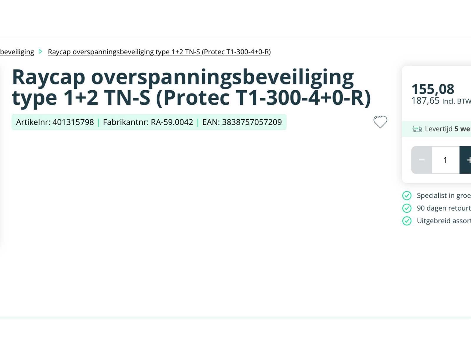 Rycap protec t1-300-4+0-r overspanningsbeveiliging type 1+2 tn-s (2x)