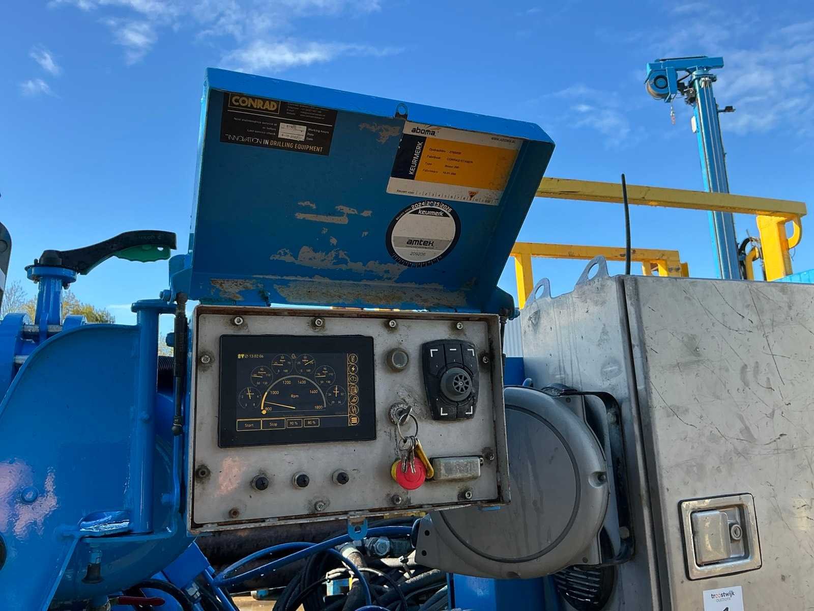 Geschikt voor schudzeef, urenstand 6513, maximale boordiepte 300 meter, voorzien van Metso pomp type HM75 met 44 boorbuizen ø 89x4000mm, digitale bediening en uitlezing, afstandsbediening, kraanboek Merk: Conrad Type: Boxer 200 Bouwjaar: 2017 Motorvermogen (kW): 125kW Totale afmeting L: 9000mm Totale afmeting Breedte: 2100mm Totale afmeting Hoogte: 2950mm