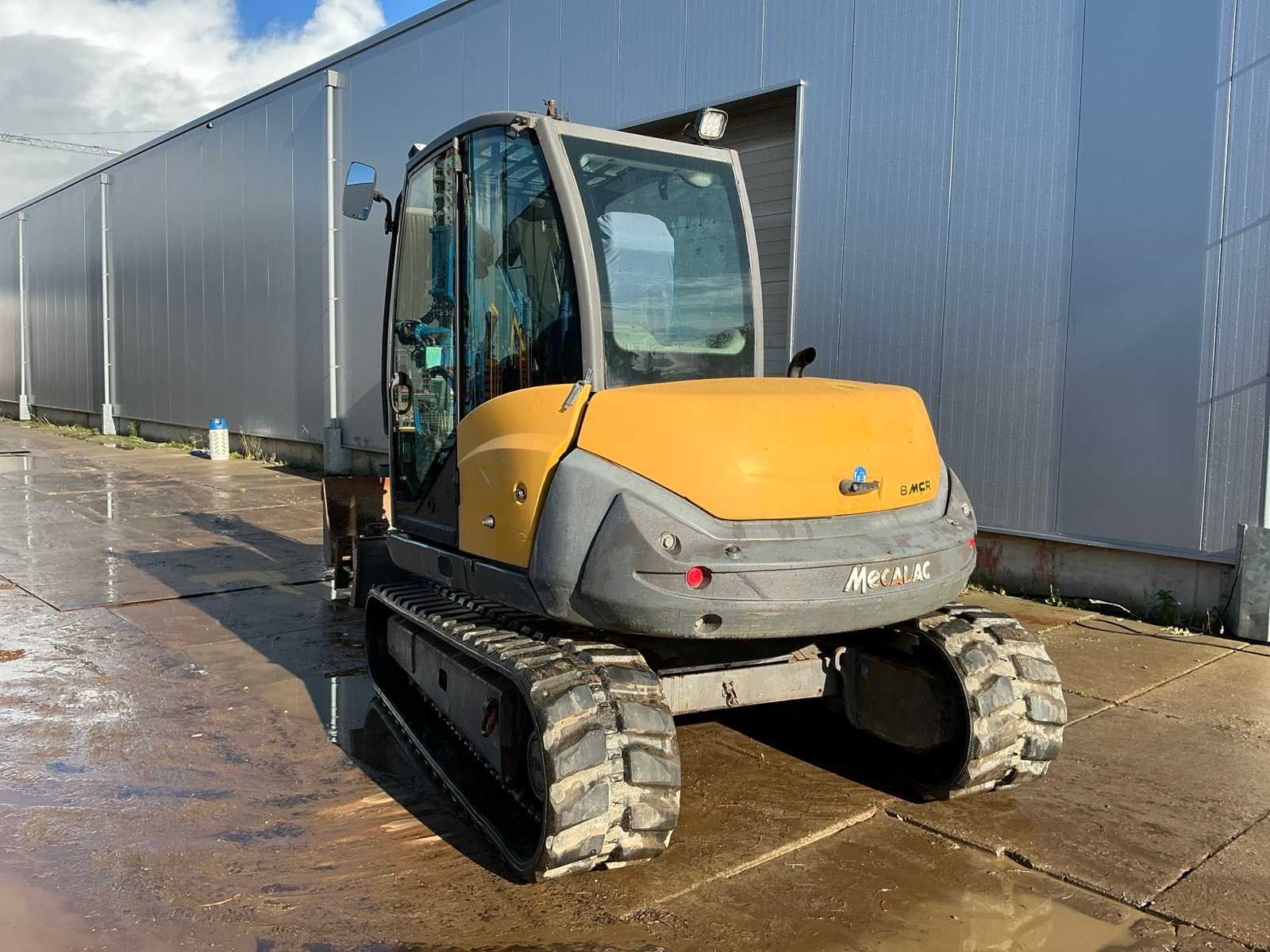 Voorzien van contragewicht, snelwissel systeem, lepels, en schuifblad Merk: Mecalac Type: 8MCR Bouwjaar: 2010 Serienummer: 130214 Merk motor: Deutz Motorvermogen (kW): 55kW Aantal cilinders: 4 Brandstof: Diesel Bedrijfsgewicht: 6925kg Gieklengte: 5000mm Max. werkbereik: 6000mm Max. graafdiepte: 2500mm Met graafbak: true Graafbak afm. b: 1500mm Rups breedte: 450mm Cabine: true Afgelezen urenstand: 11881 Eigen gewicht: 7650kg Totale afmeting L: 3100mm Totale afmeting Breedte: 2200mm Totale afmeting Hoogte: 2772mm