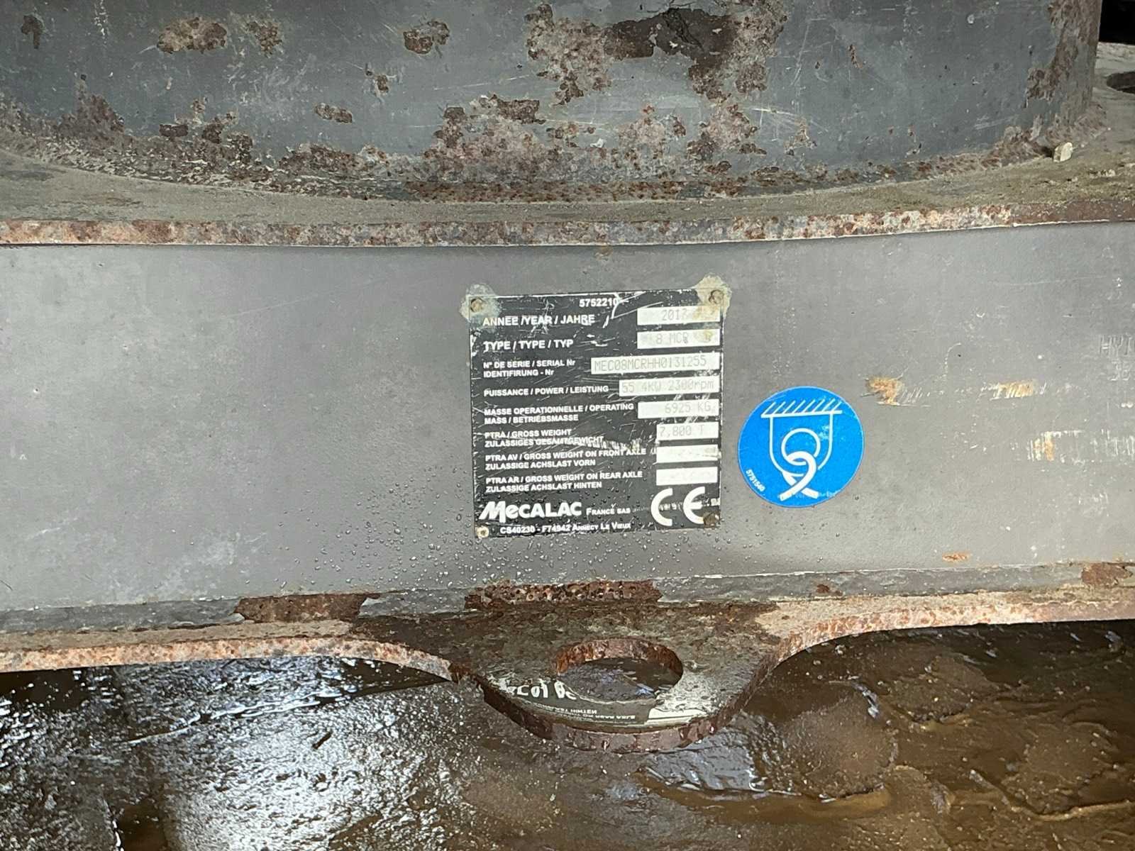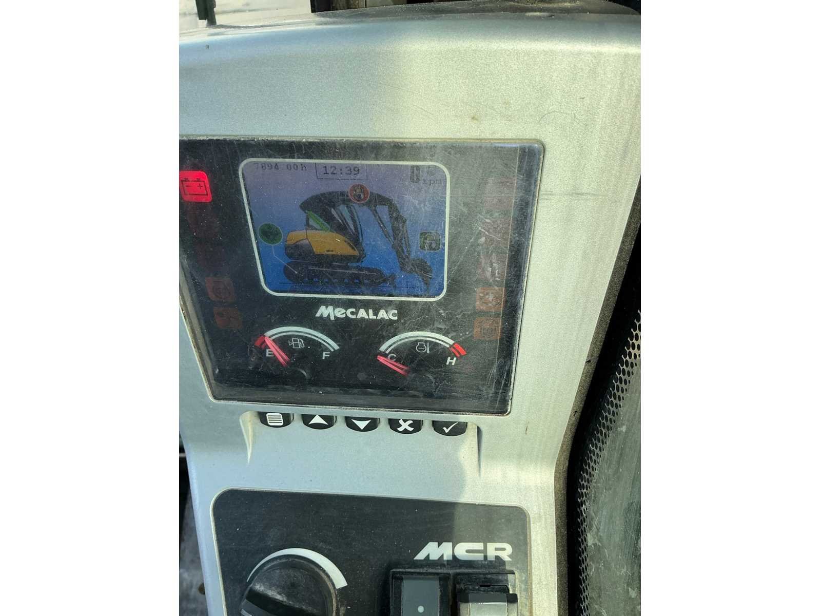 Voorzien van contragewicht, snelwissel systeem, lepels, en schuifblad Merk: Mecalac Type: 8MCR Bouwjaar: 2017 Serienummer: 131255 Merk motor: Deutz Motorvermogen (kW): 55kW Aantal cilinders: 4 Brandstof: Diesel Bedrijfsgewicht: 6925kg Gieklengte: 5000mm Max. werkbereik: 6000mm Max. graafdiepte: 2500mm Met graafbak: true Graafbak afm. b: 1500mm Rups breedte: 450mm Cabine: true Afgelezen urenstand: 7895 Eigen gewicht: 7650kg Totale afmeting L: 3100mm Totale afmeting Breedte: 2200mm Totale afmeting Hoogte: 2772mm