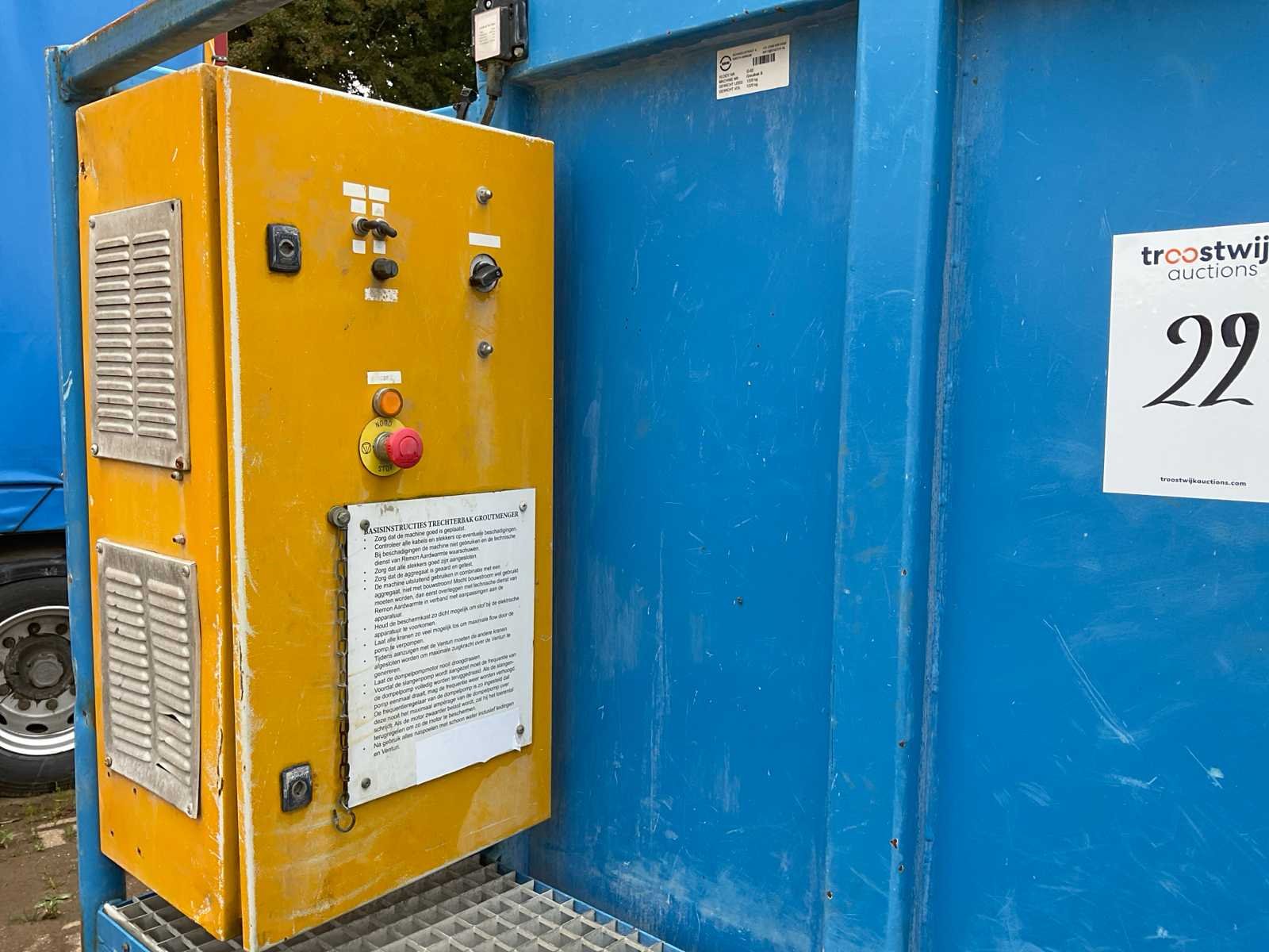 Voorzien van Bredel slangenpomp type 40, opgebouwde bedieningskast en zijopgang Merk: RKV Type: GB Totale afmeting L: 1720mm Totale afmeting Breedte: 2130mm Totale afmeting Hoogte: 2200mm