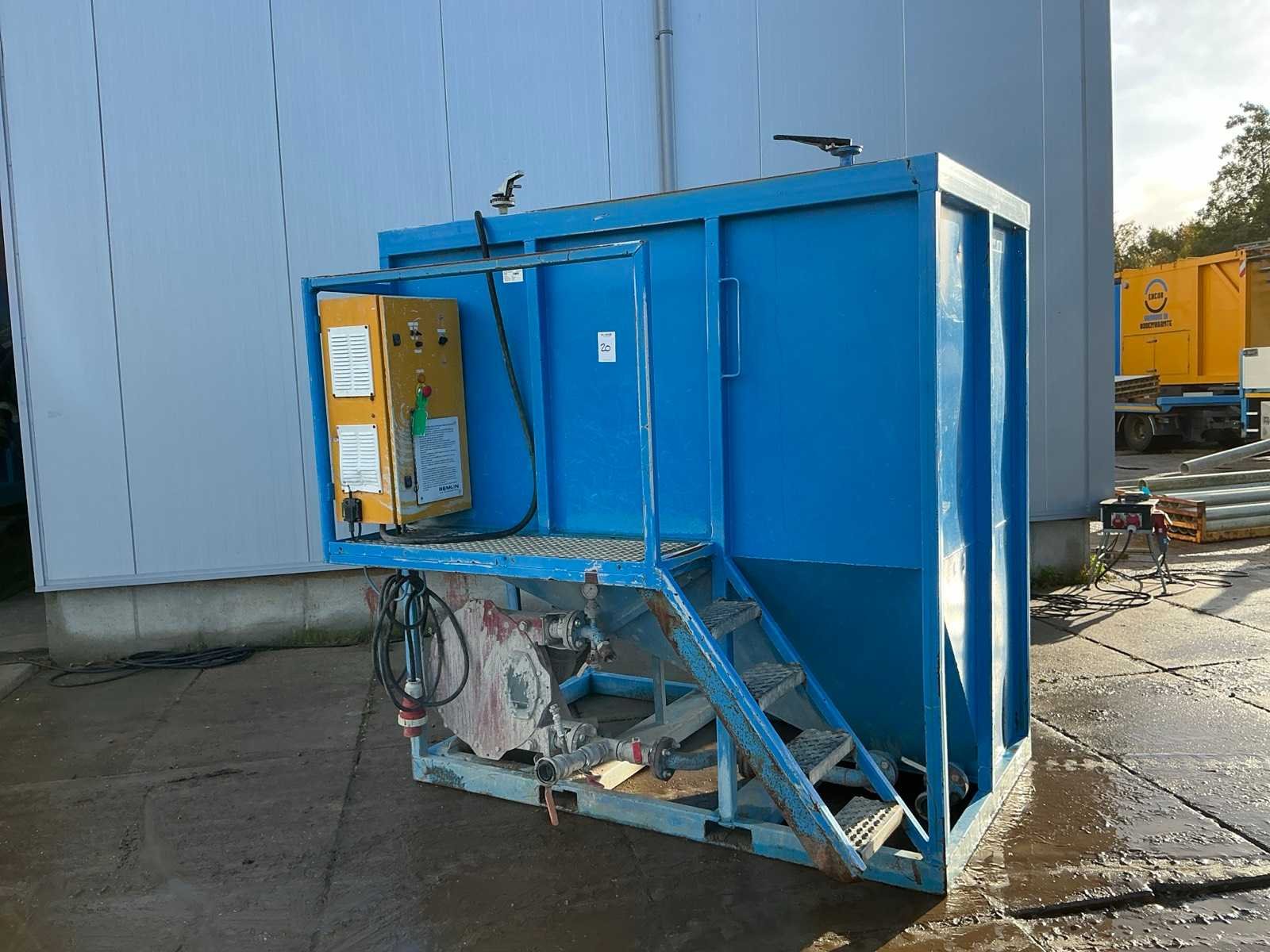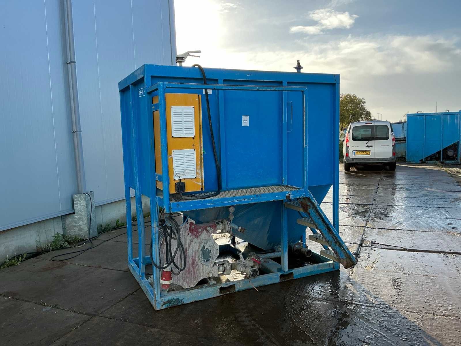 Voorzien van Bredel slangenpomp type 40, opgebouwde bedieningskast en zijopgang Merk: RKV Type: GB Totale afmeting L: 1720mm Totale afmeting Breedte: 2130mm Totale afmeting Hoogte: 2200mm