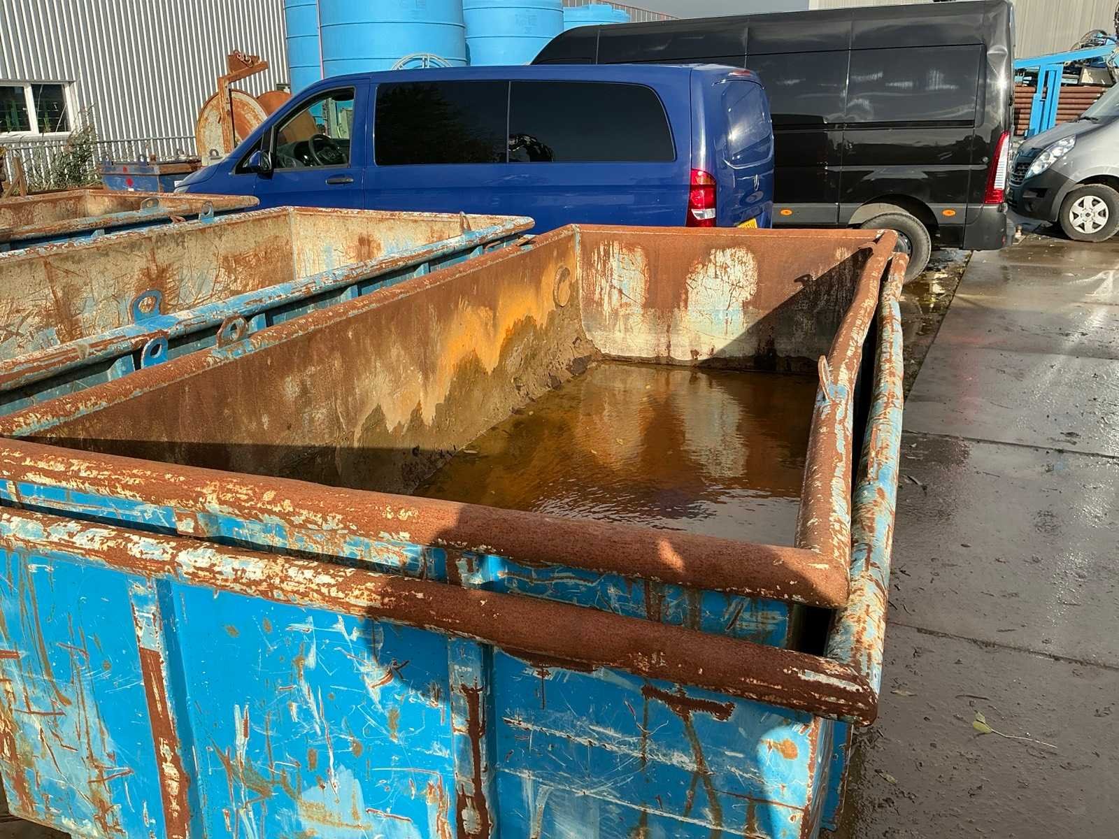 Een set spoelboor containers voor het opslaan en bezinken van boorspoeling tijdens de boring. Zijn voorzien van ronde mangaten aan de zijkant om een mantelbuis in te voeren. Bakken zijn aan de onderzijde aan de lange kant voorzien van hijsbalken geschikt voor palletvork en aan de bovenzijde van 4 hijsogen Totale afmeting L: 3900mm Totale afmeting Breedte: 1850mm Totale afmeting Hoogte: 900mm