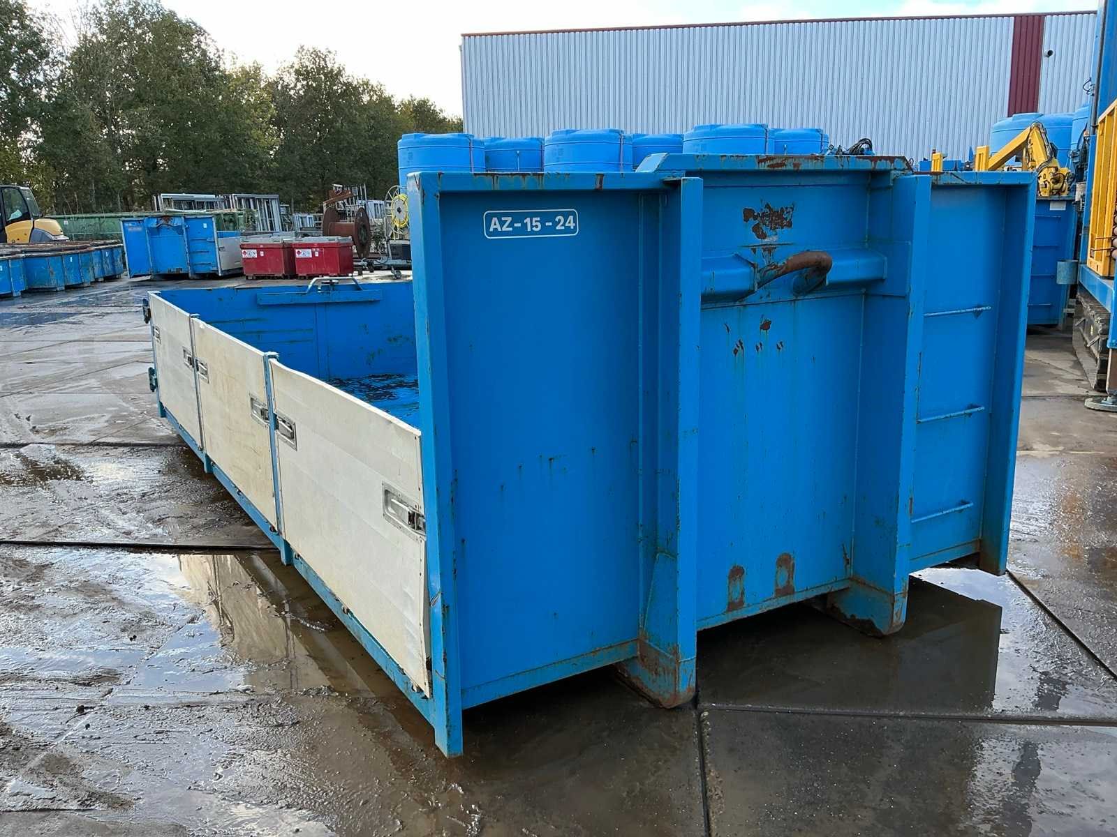 Afmeting circa 2550x5500x1760mm, voorzien van schotten en deuren