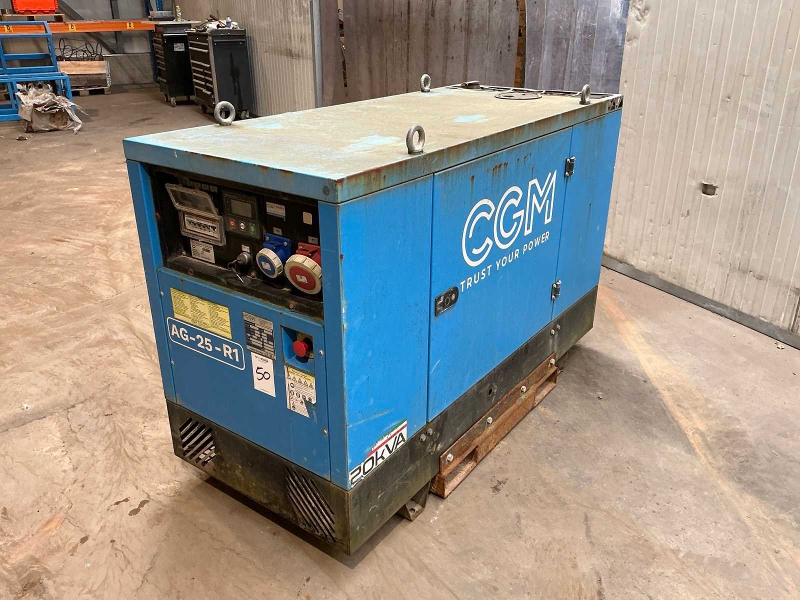 Voorzien van nieuwe accu’s Merk: CGM Type: v20KH Bouwjaar: 2020 Serienummer: 15709/20 Capaciteit.: 20kVA Diesel: true Type motor: Kohler Motorvermogen (kW): 16kW Afgelezen urenstand: 931 Machinegewicht: 624kg Totale afmeting L: 1600mm Totale afmeting Breedte: 700mm Totale afmeting Hoogte: 1040mm