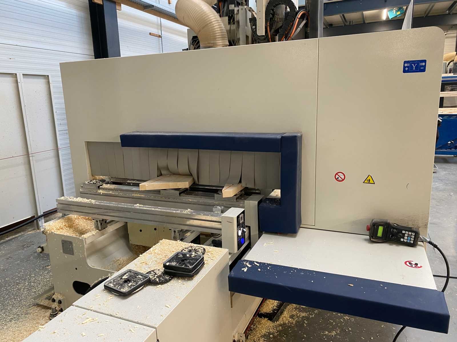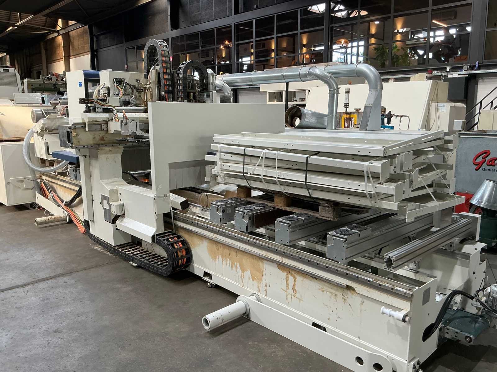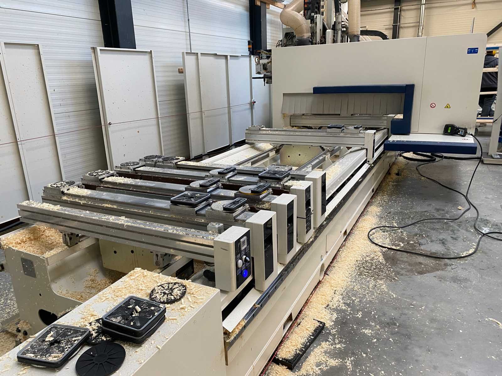 Werktafel voorzien van 2 vacuümvelden Werktafel voorzien van 2 referentie nokken Inclusief 8 referentieaanslagen en 8 supports Snelheid XY, vectoriaal 35 m/min Beweging assen Maximale snelheid X-as 25 m/min (pro space) Maxmale snelheid X-as 90 m/min (pro speed) Maximale snelheid Y-as 90 m/min Maximale snelheid Z-as 30 m/min Besturingseenheid Machinebesturing KVARA control Windows Embedded Standard 7-64bit Opslagcapaciteit harde schijf 500GB-7200rpm Microprocessor Intel Pentium-2,9GHz RAM memory 8GB-DDR4 XILOG-MAESTRO softwarepakket Inclusief vacuümpomp Motorvermogen 5,5 kW Vermogen pomp 250m3/uur Vacuümdruk maximaal 0,9 bar Afmetingen totaalopstelling 9000x4500x3000 (LxBxH) Merk: SCM Type: Accord 25 FX Bouwjaar: 2018 Serienummer: AA10000992 Tafel afmeting l: 5020mm Tafel afmeting b: 1380mm Machinegewicht: 7500kg