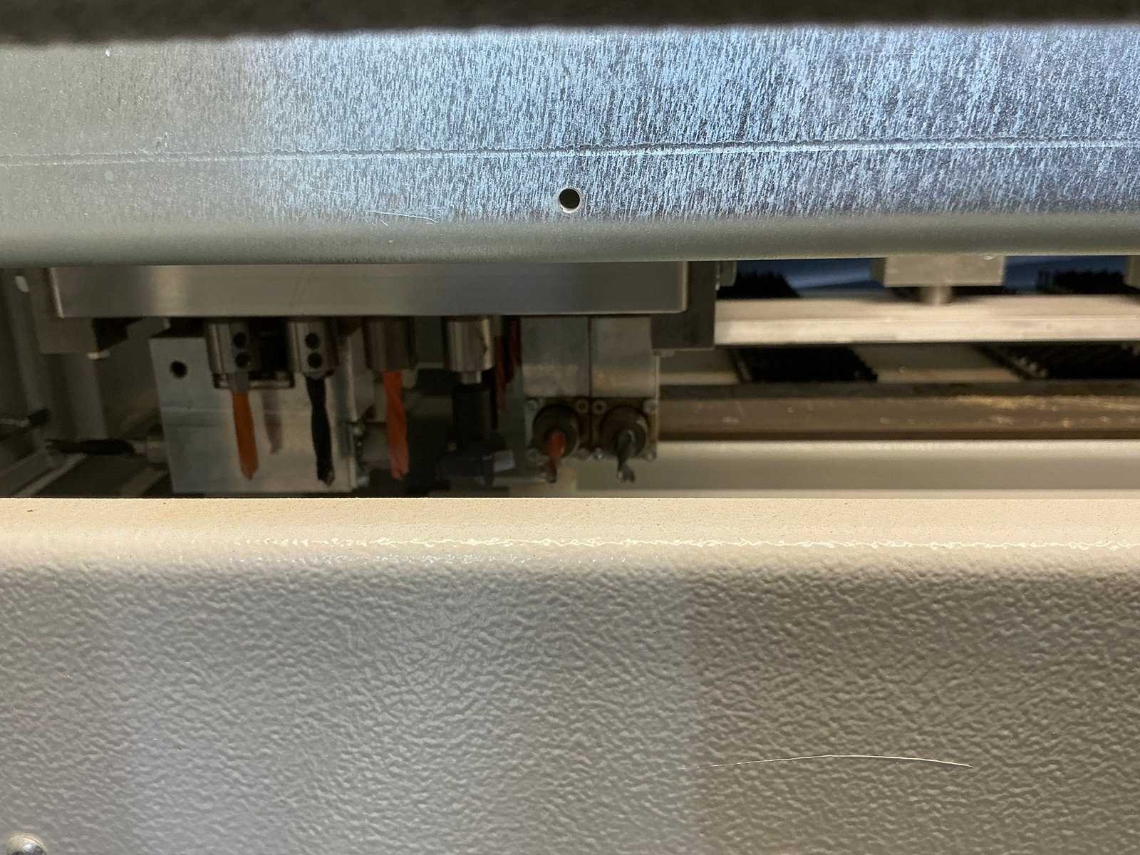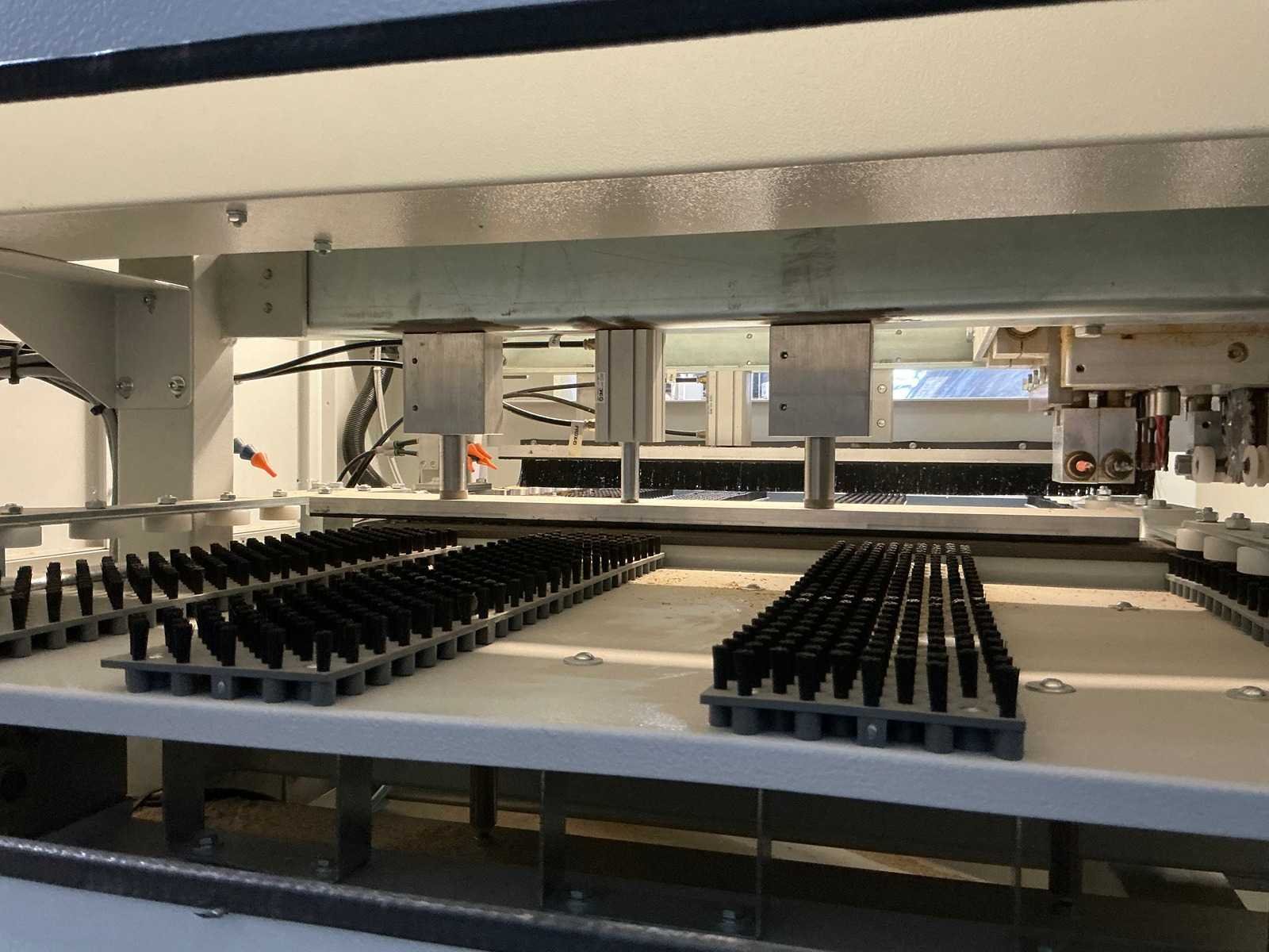 Boorkop bestaande uit: onafhankelijke spindels, 9 verticale 1+1 horizontale voor de voor- en achterzijde, 1+1 horizontale TH2 voor 2 bijpassende gaten in één passage, 1+1 TH3 op de Y-as detectie paneelrand voorzien van voetpedaal Merk: Maggi Type: GT 800 Bouwjaar: 2020 Gewicht: 975kg Lengte: 1750cm Breedte: 1800cm Hoogte: 1800cm