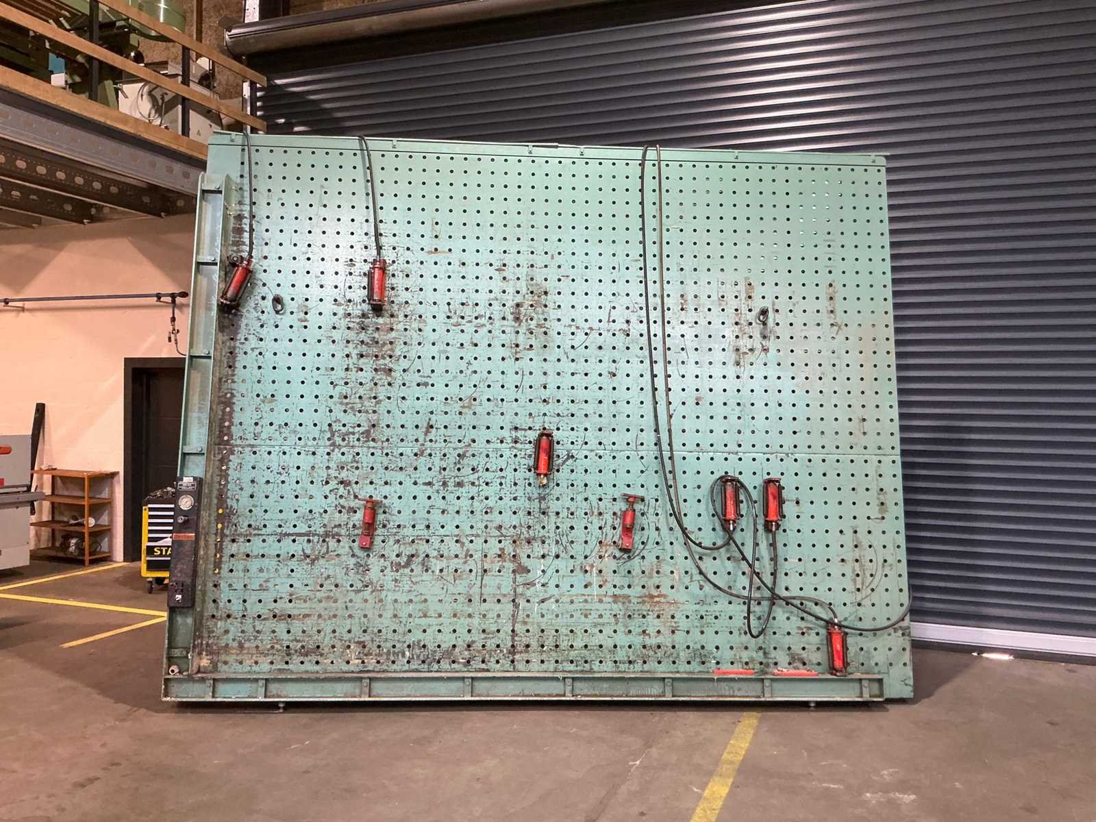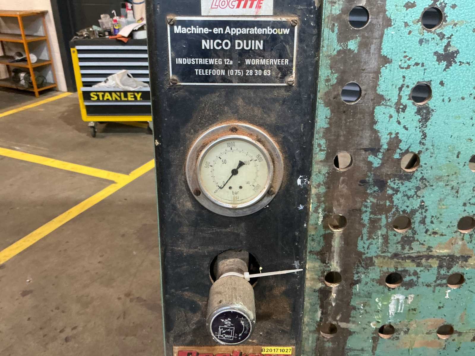Aandrijving pers: Hydraulisch Max opsluitmaat breedte: 4000mm Max opsluitmaat hoogte: 3000mm 5 cilinders 3 tegendruk cilinders Merk: Van Duin Afmeting l: 4600mm Afmeting b: 1300mm Afmeting h: 3600mm Machinegewicht: 1500kg