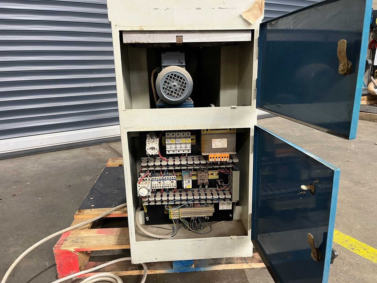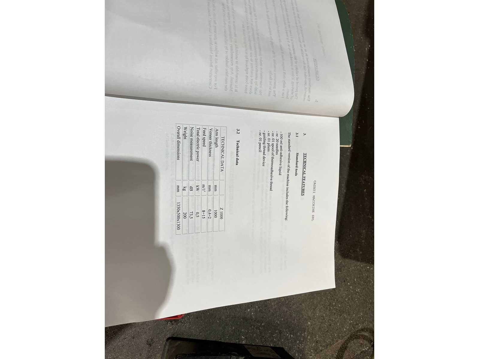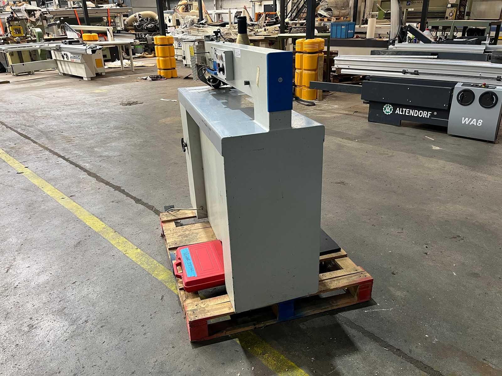 Opening breedte [mm] 1.000 Min. veneer dikte [mm] 0,4 Max. veneer dikte [mm] 2 Doorvoersnelheid min. [m/min] 8 Doorvoersnelheid max. [m/min] 15 Merk: Casati Type: Z 1000 Bouwjaar: 2000 Serienummer: 00010016 Machinegewicht: 200kg Totale afmeting Breedte: 500mm Totale afmeting Hoogte: 1300mm Totale afmeting L: 1350mm