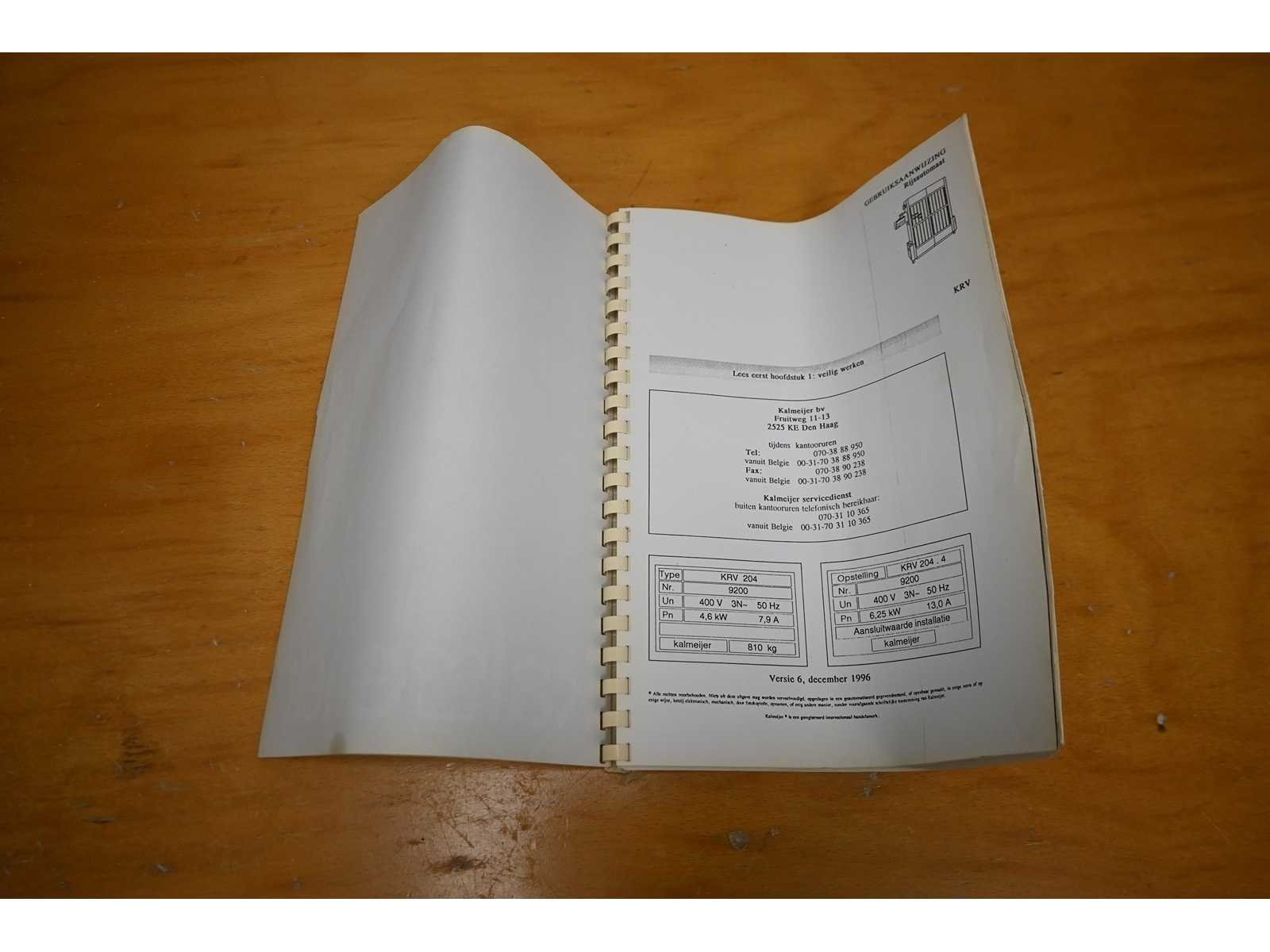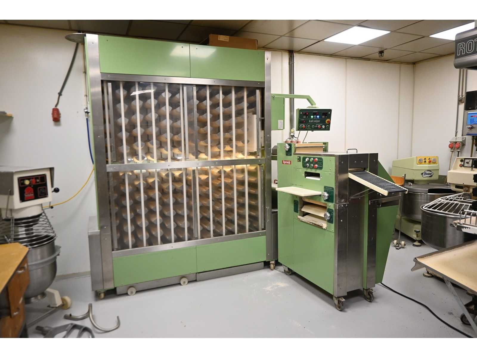 Kalmeijer grootbroodlijn, bestaande uit : 1x Kalmeijer rijsautomaat, type KRV 204-4, afmeting circa 2450x750x2600 mm ; 1x Kalmeijer afmeet- en oppuntmachine, afmeting circa 600x600x1000 mm, gewicht 200 kg; 1x Kalmeijer toevouw en opmaakmachine, type KTO, afmeting circa 1140x850x1580 mm; 380 Volt. Merk: Kalmeijer Type: 204.4 Aansluiting: 380V