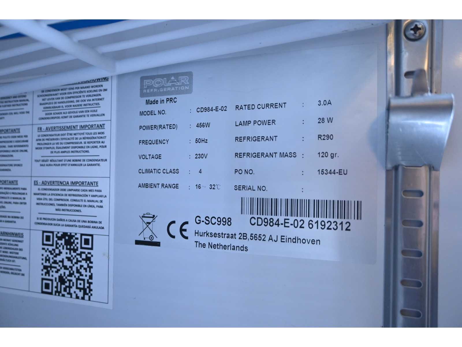 230V. Merk: Polar Type: CD984-E-02 Totale afmeting L: 120cm Totale afmeting Breedte: 70cm Totale afmeting Hoogte: 207cm