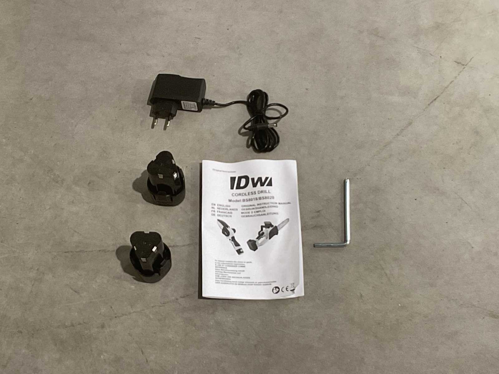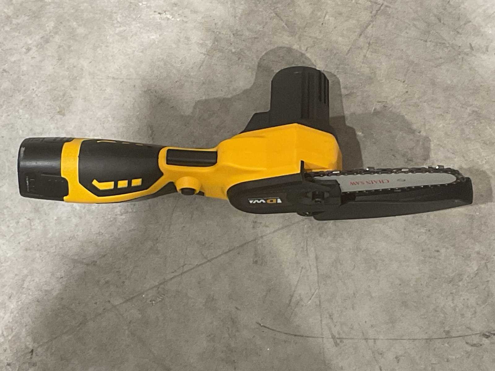 Voorzien van kettingzaag; lader; 2 accu’s; koffer; Ongebruikt in doos (Transport afmetingen 350 x 210 x 130, Gewicht 2,14 kg) Merk: DW Type: BS8020 Bouwjaar: 2025 Spanning: 12V Aantal accu's: 2 Accu lader: true Met koffer: true Zaagmachine: true