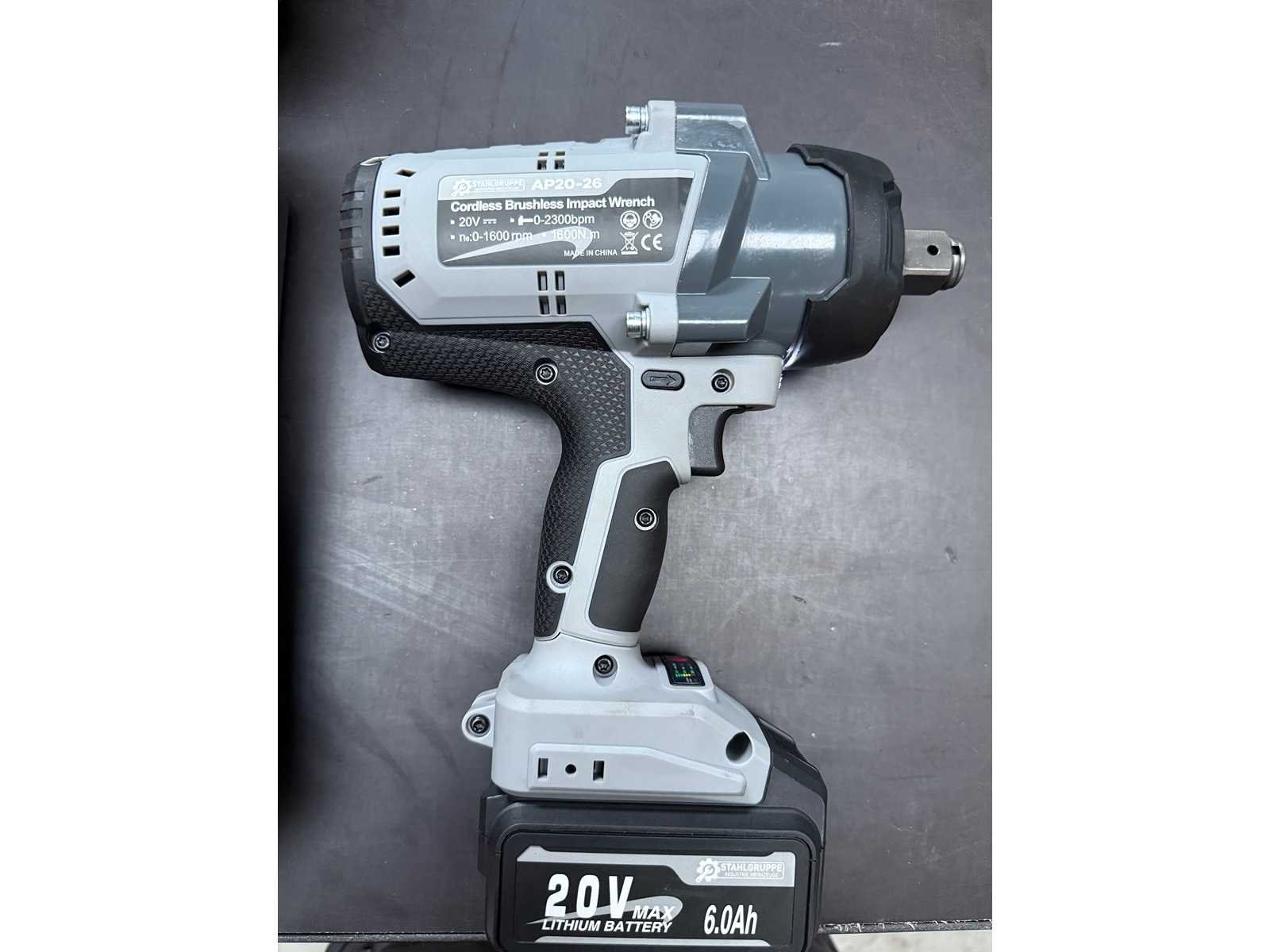 Li <b>Accu slagmoersleutel</b> <li><b>Koppel:</b> 1600 Nm</li> <li><b>Voltage:</b> 20 volt</li> <li><b>Accu:</b> 6.0 Ah accu</li> <li><b>dopmaat:</b>geschikt voor 3/4” doppen</li> <li><b>Toeren per minuut:</b> 1600 RPM</li> <li><b>slagen per minuut:</b> 2300 BPM</li> <li><b>Aantal accu’s:</b> 2 accu’s</li> <li><b>Acculader:</b> Acculader inbegrepen</li> <li><b>Staat:</b> Ongebruikt, in de originele verpakking</li> Nee Merk: Stahlgruppe Within 14 days