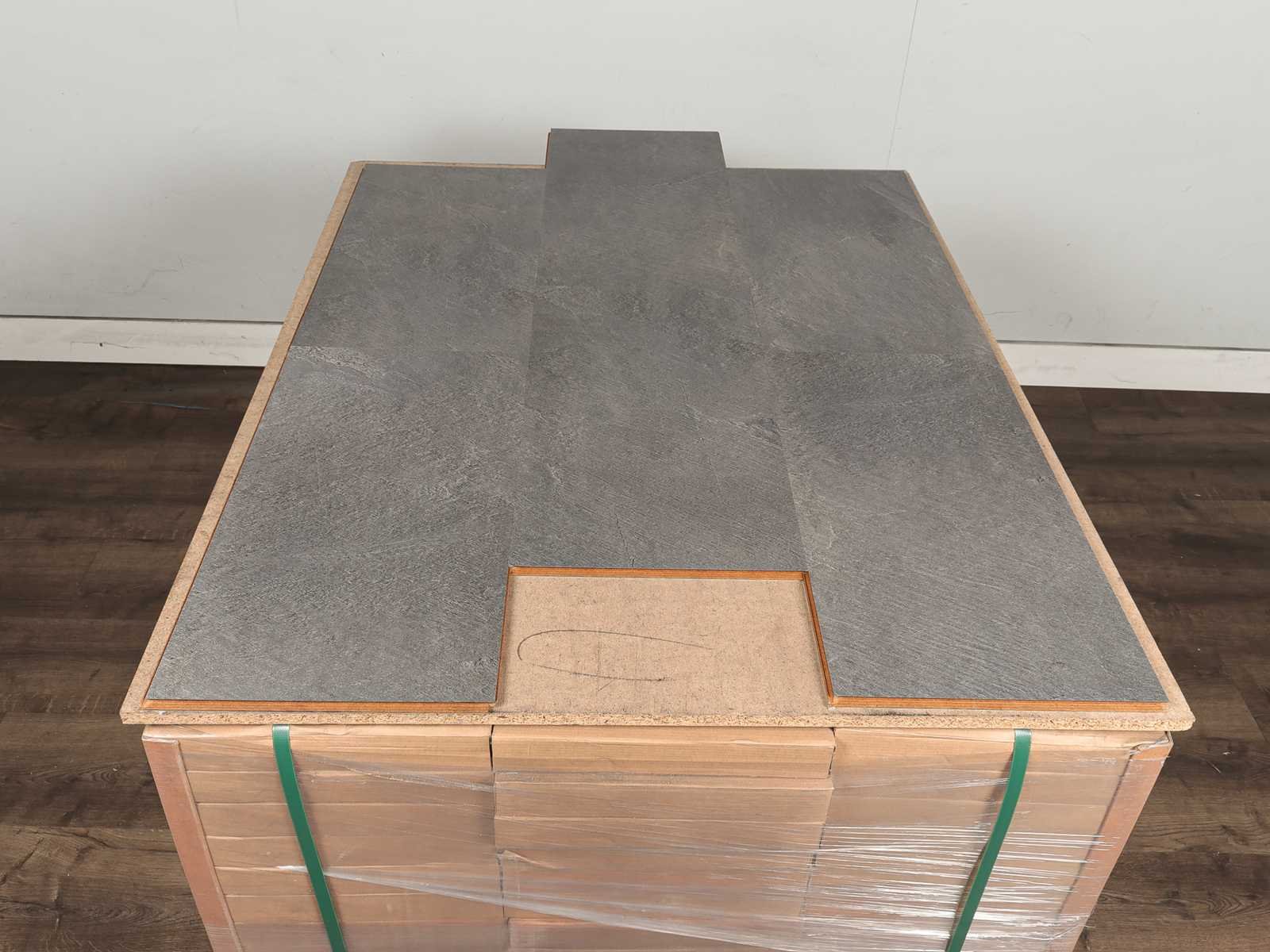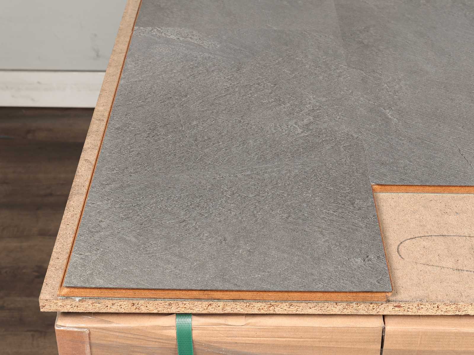 Kwaliteits pvc click vloer, pvc click, PVC laag op HDF rug, met Filt onderlaag, water bestendig, vorstbestendig, ideaal voor vloerverwarming, kras en slijtvast, anti slip, 74 pakken a 1,68 m2 Merk: Wineo Product type: PVC Oppervlakte: 124m² Geschikt voor vloerverwarming: Ja V-groef: Nee Afwerking: Voelbaar structuur, anti slip Aantal m² per verpakking: 1.68m² Kleur: Timeless slate dark Gewicht: 1250kg Lengte: 601mm Breedte: 310mm Materiaal: HDF/PVC