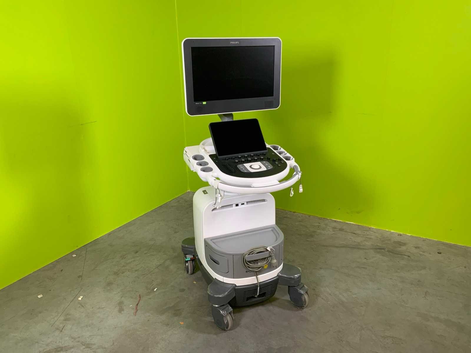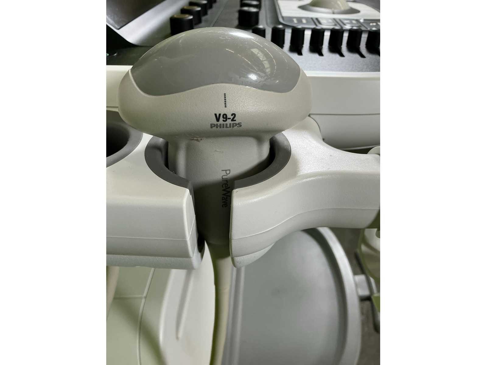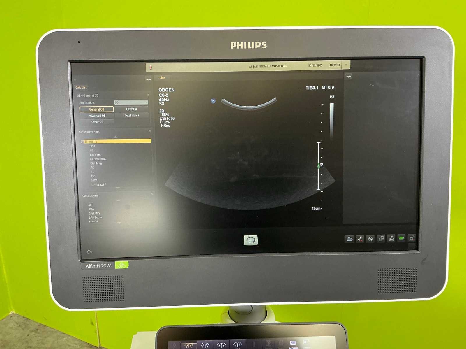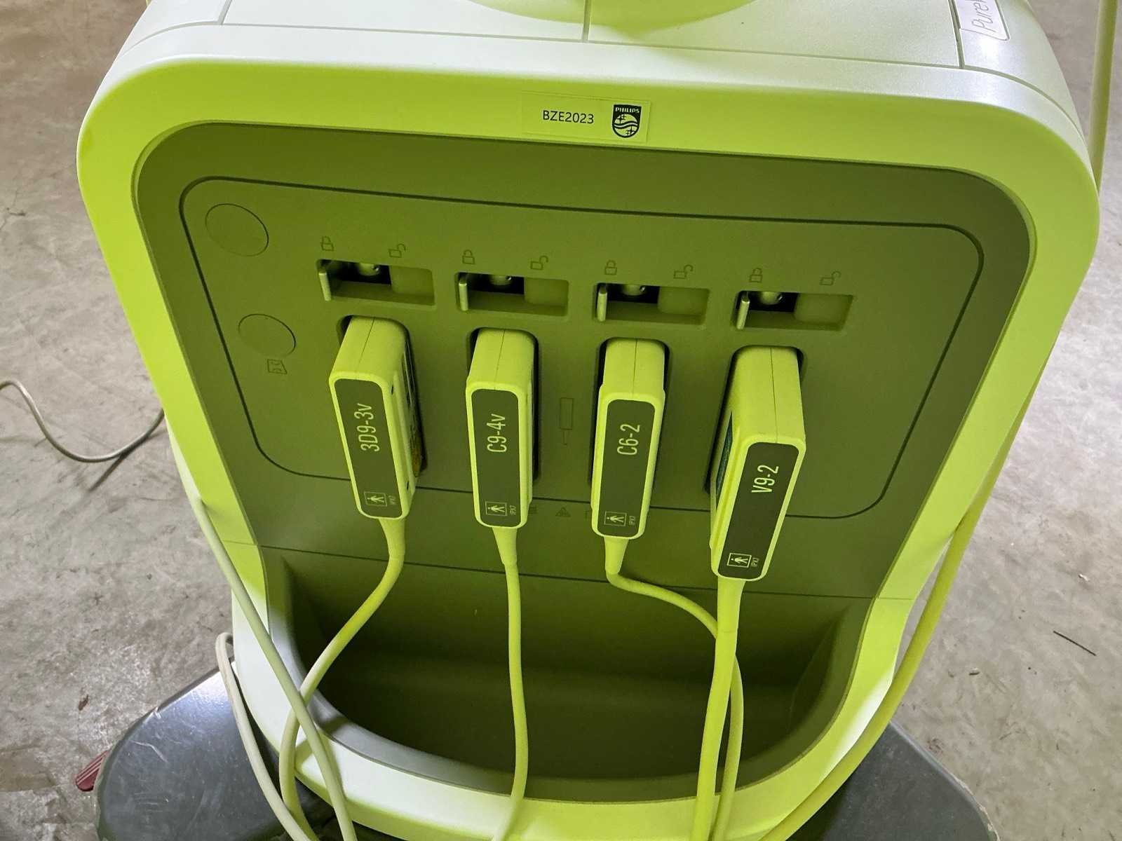 Voorzien van 5 transducers, 21" full optie scherm, 3D9-3V (3D, 4D endovaginal), C5-1 (Breedband abdominaal, 5-1 MHz), C6-2 (Abdominaal, curved sonde 6-2 MHz), C9-4V (Endovaginaal breedband, 9-4 MHZ, beeld van 181 graden), V9-2 (Abdominaal lichtgewicht 2, 3 en 4D) Merk: Philips Type: Affiniti 70W Bouwjaar: 2021 Serienummer: US721F0721 Aansluiting: 230V