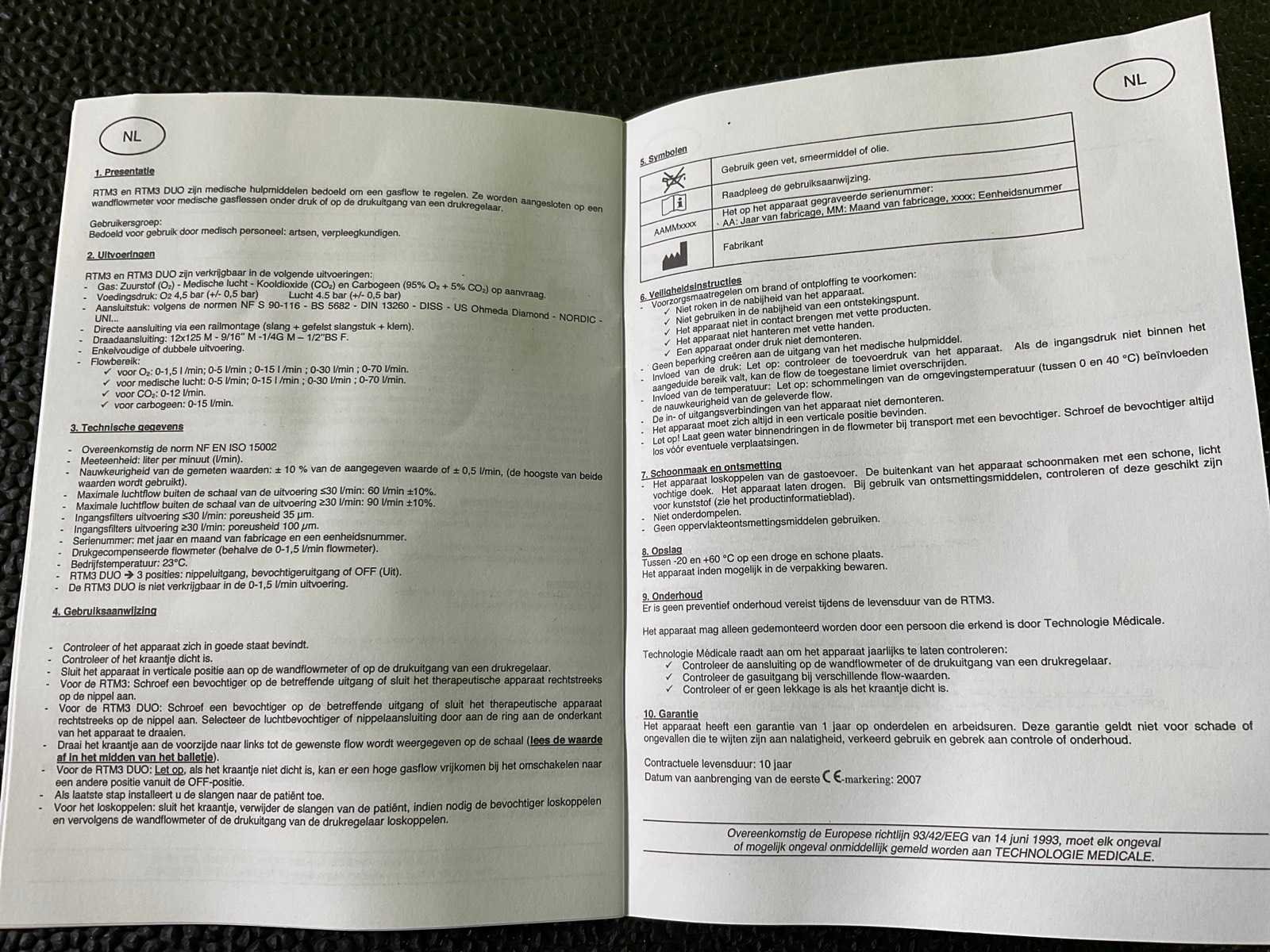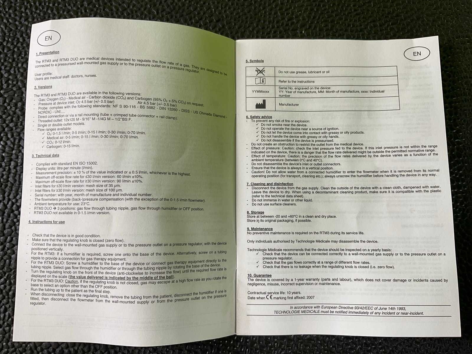 4.5 bar DUO RTM3 O2 Flowmeter, 15 l/min, 9/16 uitlaat, 1/8NPT F Inlaat. Merk: Technologie Medicale Type: RTM3