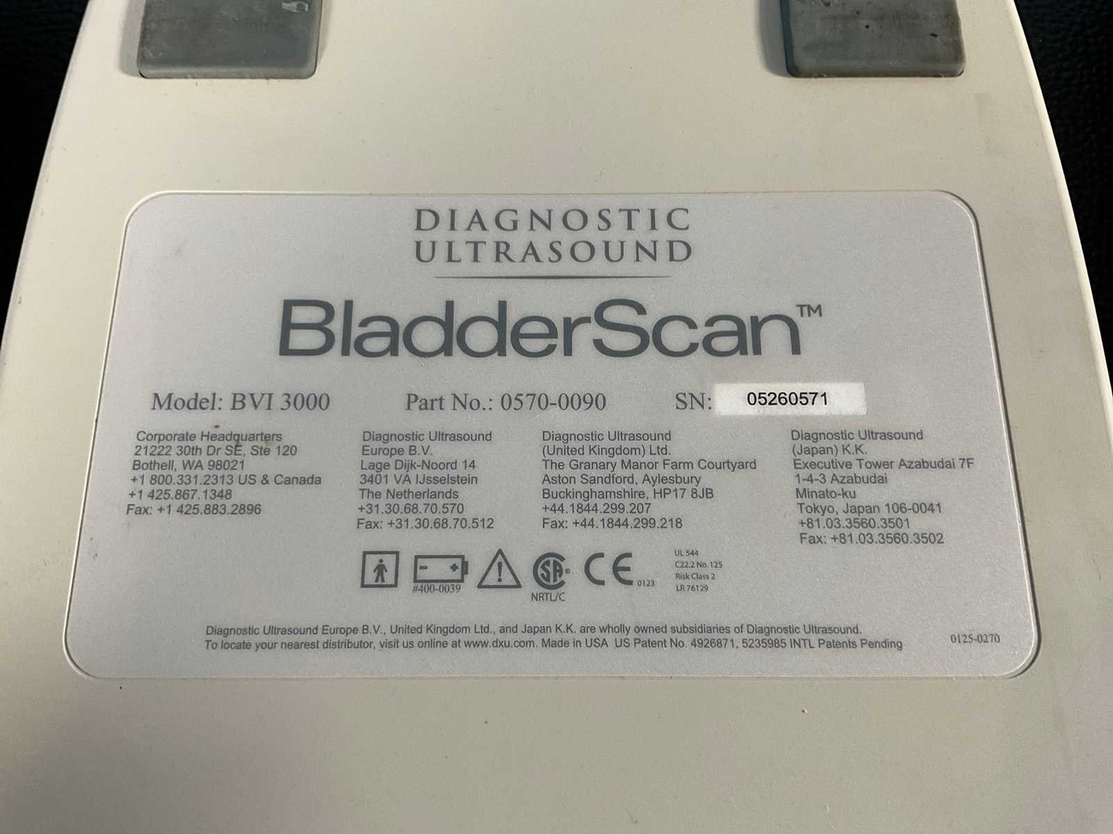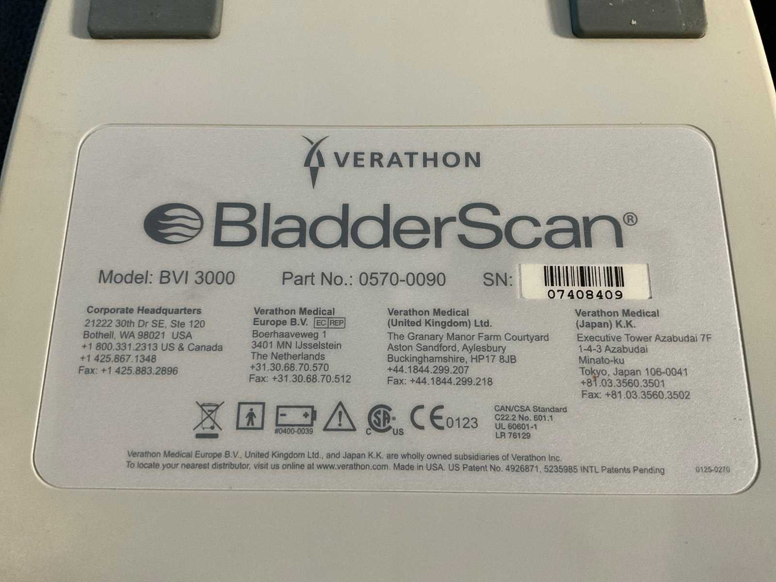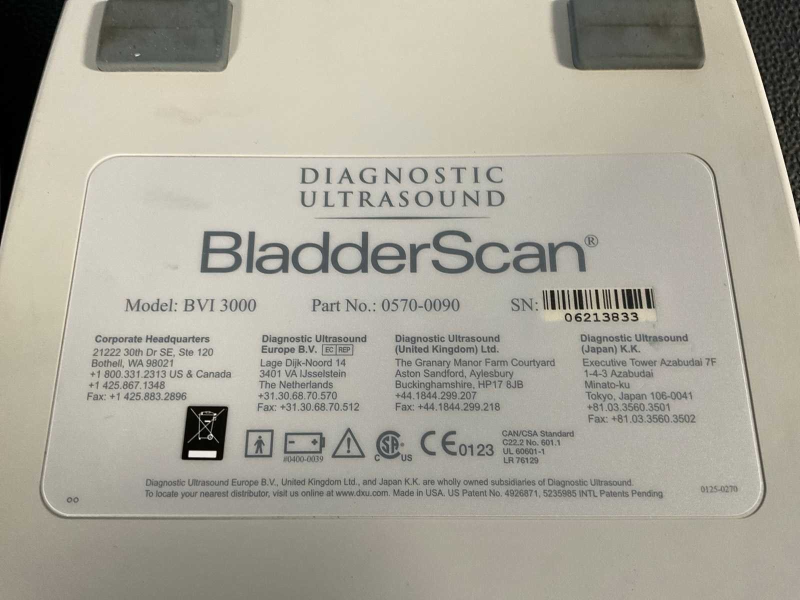 Verathon medical europe bvi 3000 bladderscanner + probes (3x)