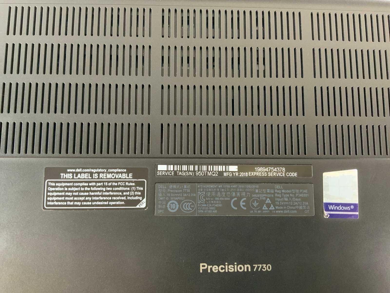 Precision 7730 18", Core(TM) i7 8th Gen, 64 GB RAM, No HDD, NVIDIA Quadro P5200 Mobile 16 GB Laptop; - Battery defect, - Excl. charger. Merk: Dell Processor type: Intel(R) Core(TM) i7-8850H Processorsnelheid Ghz: 2.60 RAM Geheugen: 64GB RAM Geheugen Type: DDR4 Type datadrager: No HDD Type videokaart: NVIDIA Quadro P5200 Mobile 16 GB Zonder adapter: true Beeldscherm type: IPS Resolutie: 1920x1080 Beelddiagonaal: 18'' Wifi: true Bluetooth: true Ethernet: 1 USB-Type: Type A,C USB poorten: 5 Webcam: true HDMI: 1 Displaypoort: 1