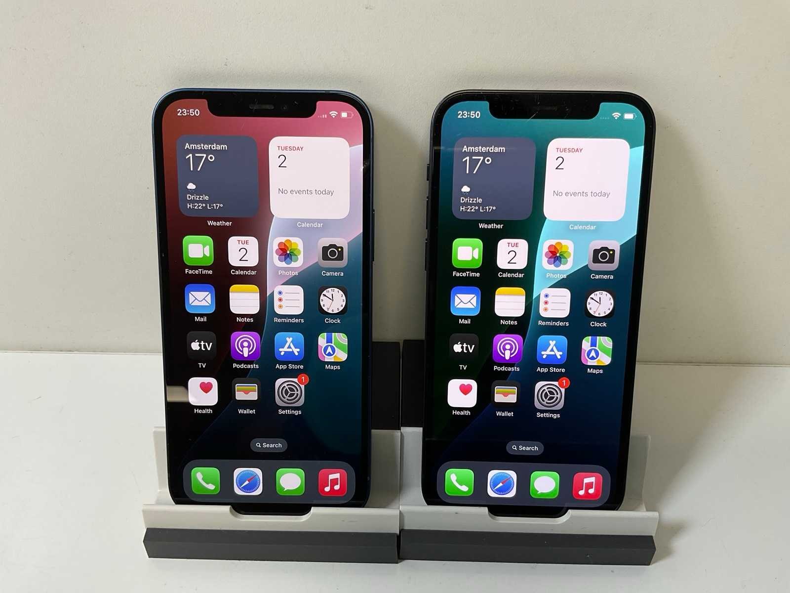 IPhone 12 - 128 GB - Black / Blue; - 1x iPhone 12 - 128 GB - Black, - 1x iPhone 12 - 128 GB - Blue, - Light Screen Scratches, - Excl. Chargers. Merk: Apple