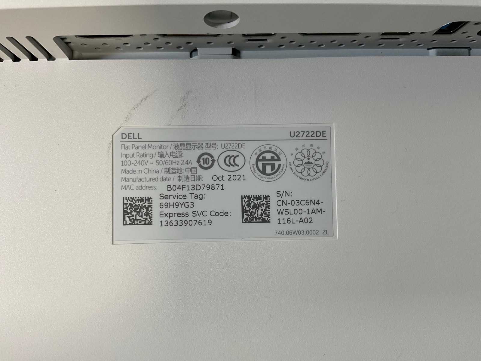 Dell (u2722de) 27”, 2560x1440 (qhd) ips monitor