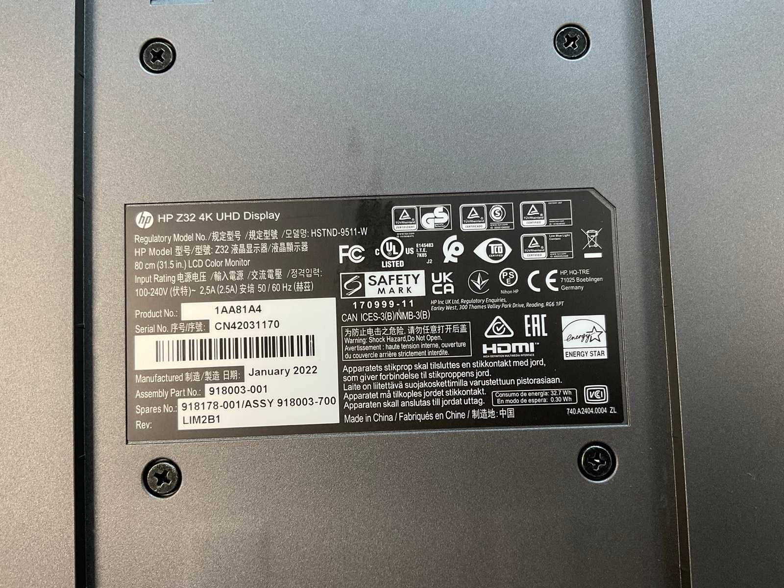 Hp (z32) 32”, 3840x2160 (uhd) ips monitor