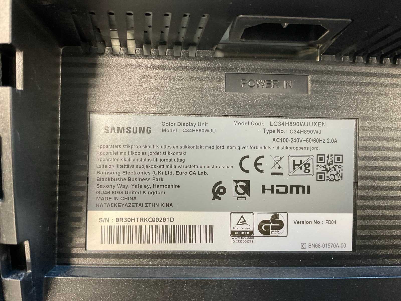 (C34H890WJU) 34”, 3440x1440 (UWQHD) LCD Curved Monitor; - Excl. Power Cable. Merk: Samsung Displaypoort: 1 HDMI: 2 USB: 2 Resolutie: 3440x1440 Beelddiagonaal: 34''