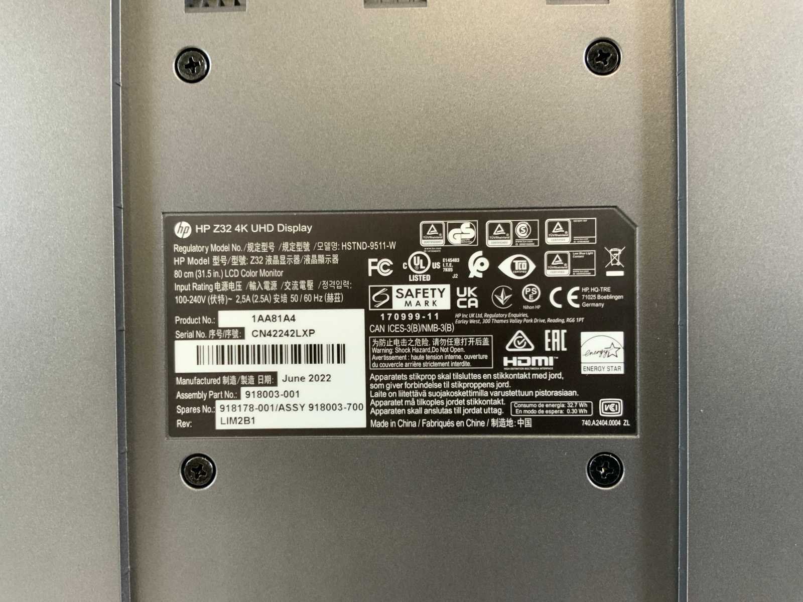 (Z32) 32", 3840x2160 (UHD) IPS Monitor; - Excl. power cable. Merk: HP Displaypoort: 3 HDMI: 1 USB: 4 Beeldscherm type: IPS Resolutie: 3840x2160 Beelddiagonaal: 32''