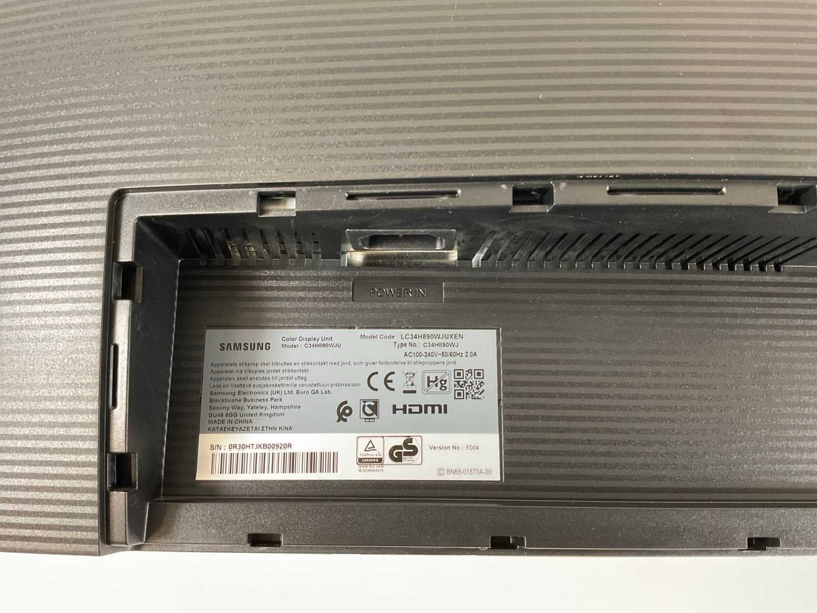 (C34H890WJU) 34”, 3440x1440 (UWQHD) LCD Curved Monitor; - Excl. power cable. Merk: Samsung Displaypoort: 1 HDMI: 2 USB: 3 Beeldscherm type: LCD Resolutie: 3440x1440 Beelddiagonaal: 34''